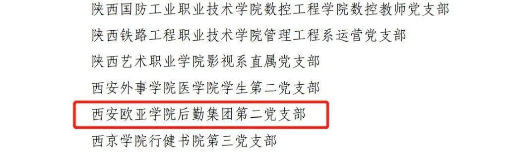 近日,中共陕西省委教育工委发布《关于公布第二批陕西高校党建示范创建和质量创优工作和首批陕西高校“双带头人”教师党支部书记工作室建设单位验收通过名单的通知》,我校后勤集团第二党支部和第三青年社区第一学生党支部分别通过了“全国党建工作样板支部”和“全省党建工作样板支部”验收。