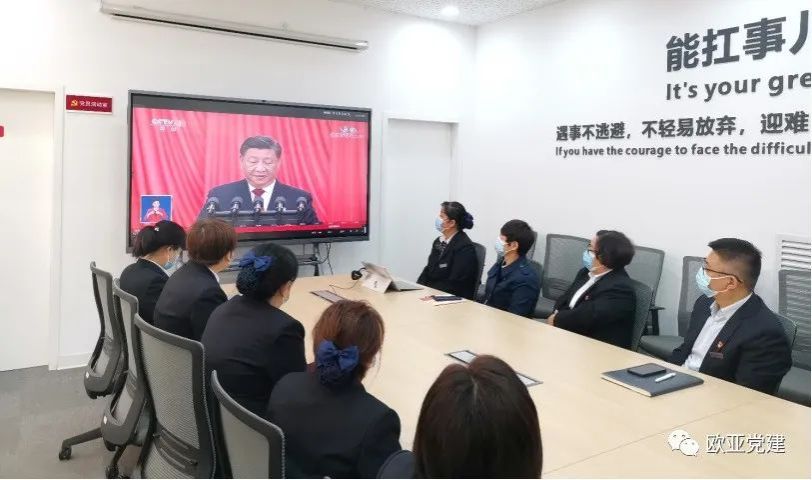 在认真聆听完习近平总书记的报告后,大家现场积极恳谈和畅想学习体会感悟,纷纷表示将不忘初心,牢记使命,踔厉奋发,毅勇前行,以更加昂扬的斗志、更加高昂的工作激情,立足本职履职尽责,为新时代欧亚实现高质量发展贡献自己的智慧与力量。后续,后勤集团党总支将按照上级党组织要求,充分利用“三会一课”和专题学习研讨等形式迅速掀起学习宣传贯彻二十大精神热潮,切实将党员干部及员工思想统一到党的二十大精神上来,以更好地指导后勤党政工作实践,积极助力集团中心工作目标实现和学校教育教学改革与高质量发展。