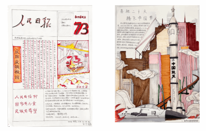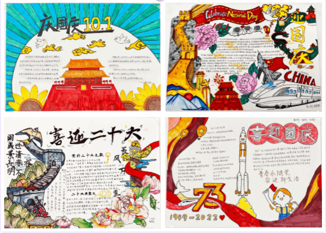 本次活动共收到手抄报作品40余份,同学们用自己手中的彩笔,勾勒出一幅幅美景,表达对祖国最真挚的热爱。
