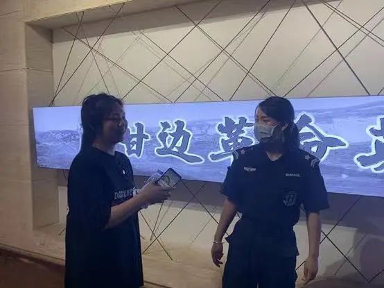 为了向更多人普及红色知识,实践队的同学们在馆内对游客和工作人员进行采访。