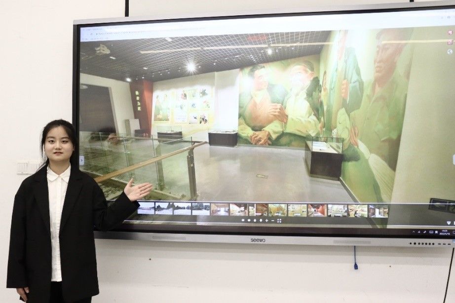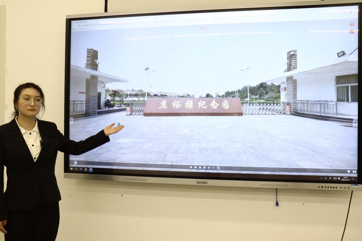 紧接着,集体在线参观焦裕禄纪念园,由工第三青年社区分党委学生第一党支部王妍、张俊霄两位同学为大家进行详细的讲解。