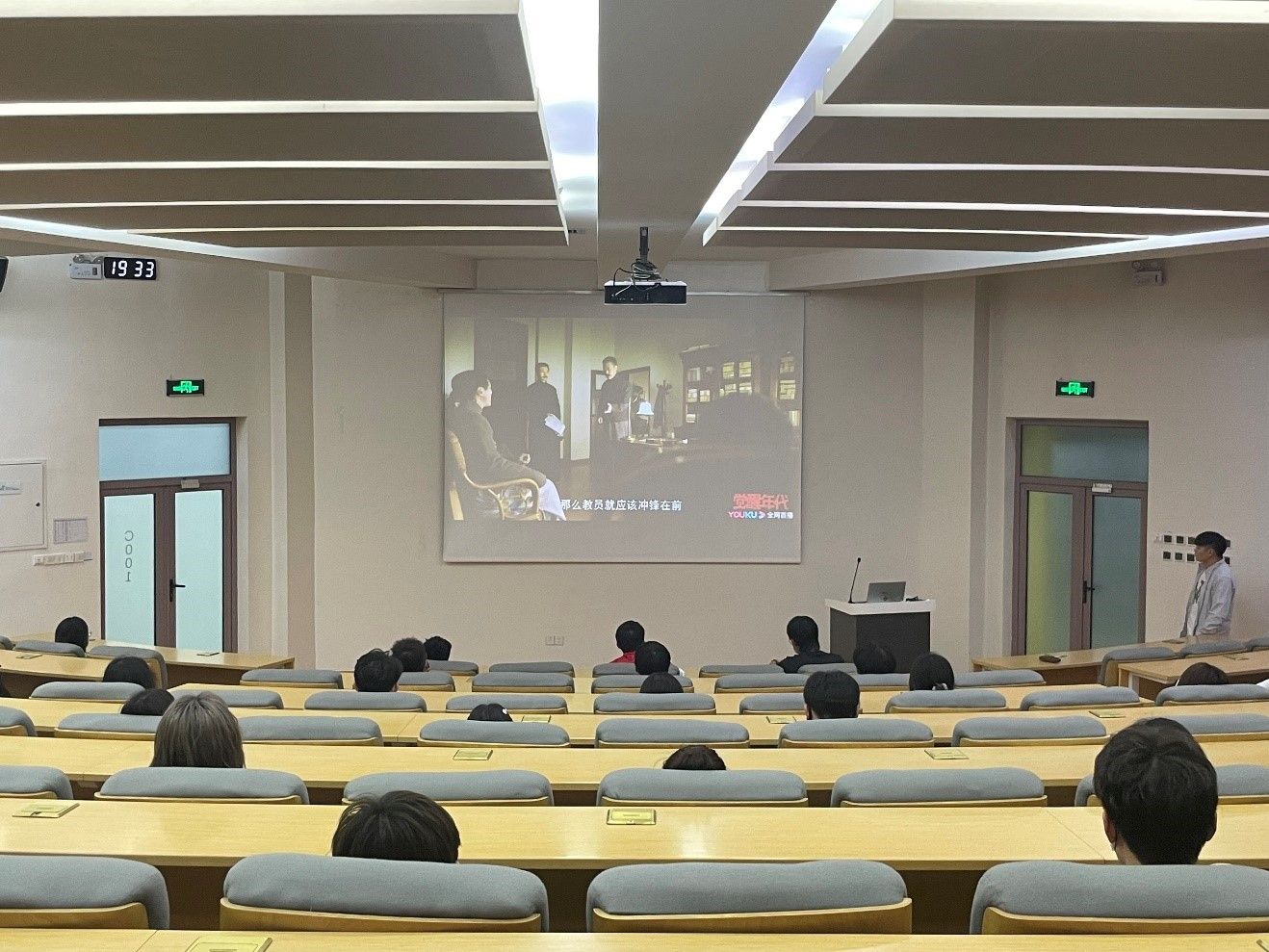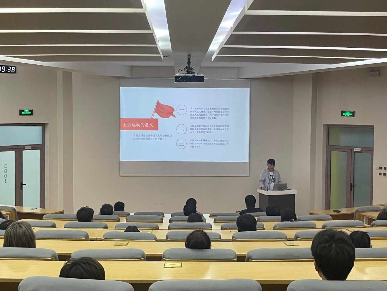 宣讲会围绕“五四运动”主题,以宣讲和观看党史故事影片相结合的方式,激发学生的爱国情怀。王亚文同学带领同学们回顾了五四运动的历史背景、爆发过程及历史意义,号召大家立鸿鹄之志,勇担时代责任和历史使命,做新时代的奋进者和开拓者。同学们观看了影片《我的1919》,影片展现了先驱们为国家所付出的努力与代价。剧中人物、情节、场景、语言深深地打动着在场所有同学,使同学们深深体会到“国家兴亡,匹夫有责”的真正意义。总忠胜老师在总结发言中强调:今天,中国正以不可阻挡的步伐向前迈,同学们要发扬五四精神,争做时代栋梁。现场同学们纷纷表示,要发扬五四精神,珍惜韶华、不负青春,努力学习,锤炼过硬本领,为全面建成社会主义现代化强国而奋斗!
