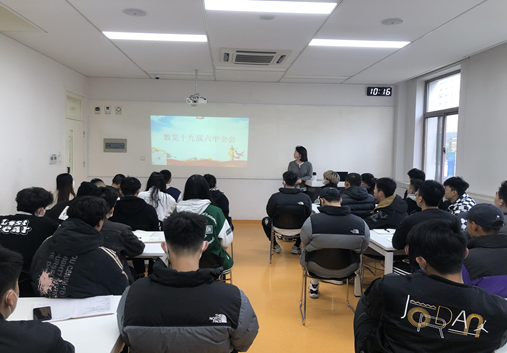 2021年11月25日高职学院体育服务系党支部书记石佳琪同志,在西C209教室与所带班级的入党积极分子进行专题学习,并围绕“如何认识这次全会”进行讨论与交流。