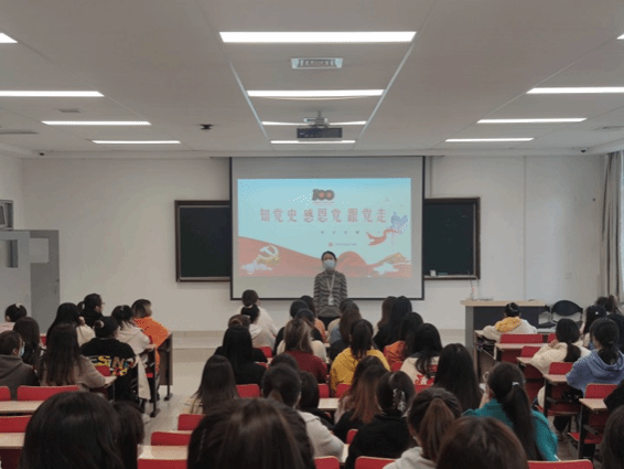 其次,谢茜同志以《党史故事100讲》作为引入,从党史,建国史,改革开放史,现代史一步一步层层递进,回顾中国共产党从艰难的起步到现在繁荣发展的新面貌。同学们从谢茜同志的介绍中更为系统和清晰的了解到中国共产党这一路走来的雨雪风霜。在场的同学们都立志于成为一名合格的共产党员,都为成为一名优秀的中国共产党员而不懈努力。