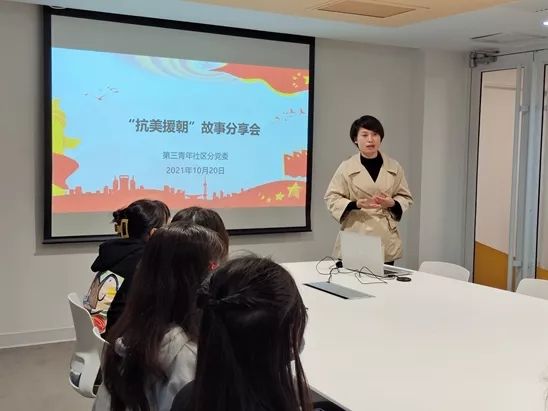 分享结束后,第三青年社区分党委副书记张爱荣同志做了总结发言,她指出:没有中国共产党的正确领导,没有当年革命先烈的付出和牺牲,就没有我们今天国泰民安和幸福生活。抗美援朝战争中涌现出来的祖国和人民利益高于一切、为了祖国和民族的尊严而奋不顾身的爱国主义精神和为完成祖国和人民赋予的使命、慷慨奉献生命的革命忠诚精神,永远值得新一代的青年发扬学习。