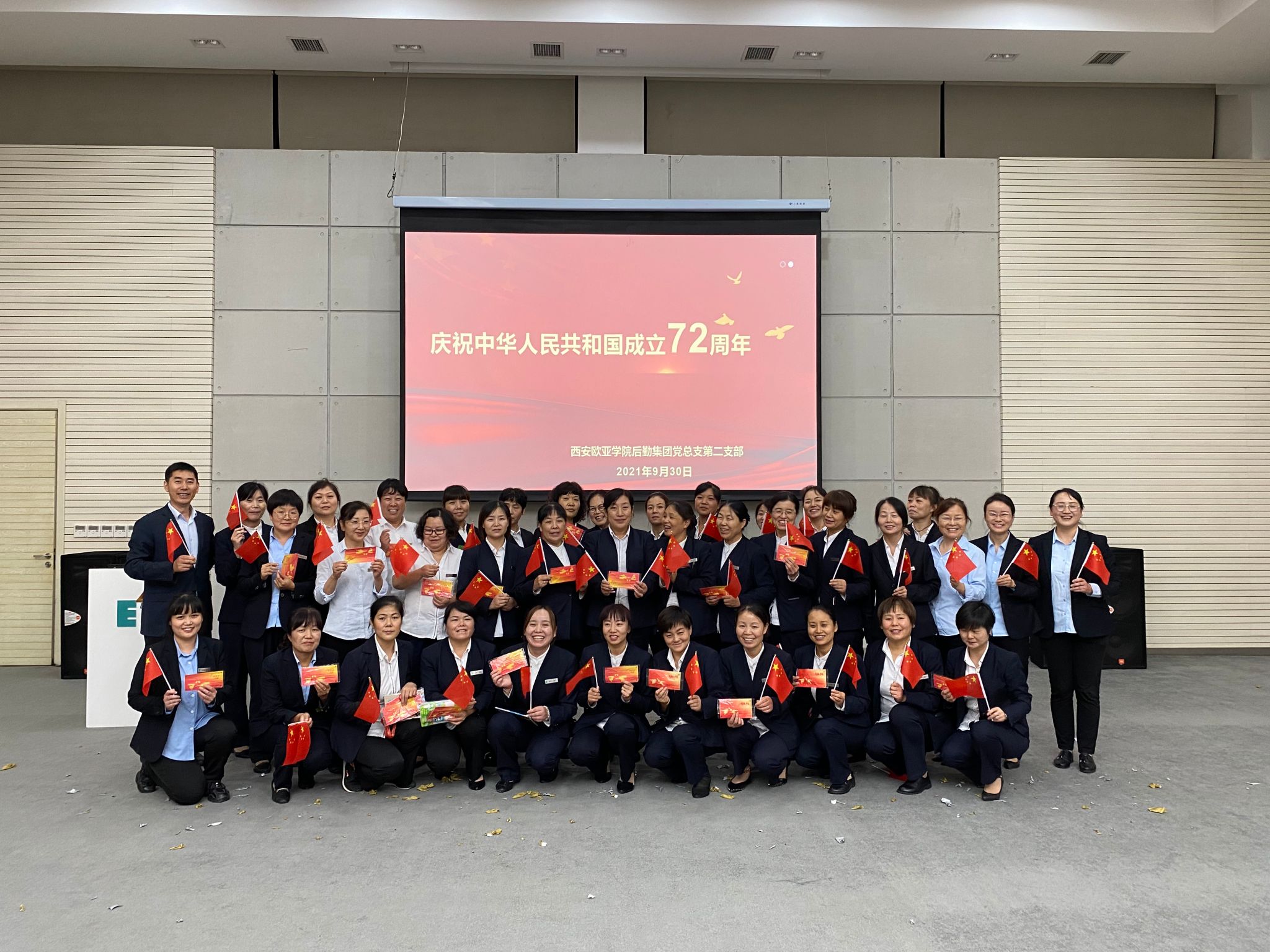 西安欧亚学院后勤集团近日在校大学生活动中心特别举办了“坚守初心,传承美好”员工感谢日暨生日Party主题党日活动,喜迎祖国72华诞,共同祝愿伟大祖国繁荣昌盛,国泰民安。