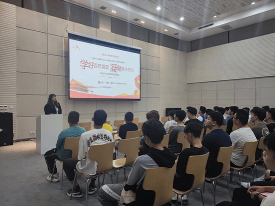 邹童娜同志以“学好百年党史,凝聚奋斗伟力 ”为题,分别从“中国共产党的光辉历史”“我们为什么要学习党史”“青年有担当”“如何向党组织靠拢”四个部分,用生动的语言、严密的逻辑为同学们讲述了对当今青年所处时代和肩负使命的认识,并对2021级新生提出了希望。