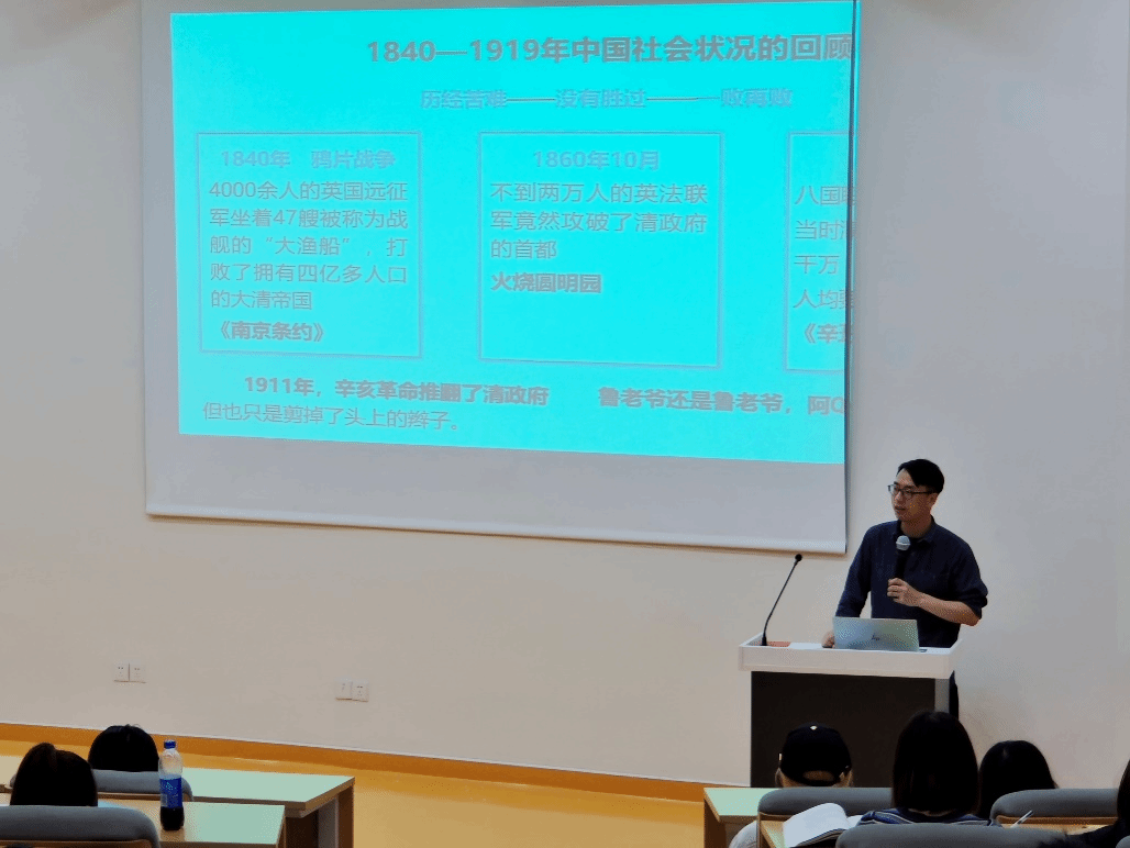雷方超老师首先通过近期的时政热点新闻,引发大家思考讨论,对比百年中国为何发生巨变。他重点讲述了中国共产党成立的时代背景和社会环境,以及中国共产党的成立所产生的划时代意义。并通过大量详实的历史资料,向同学讲解了历史最终选择中国共产党领导中国的必然性。他指出,中国共产党自成立至今,一直坚守初心,不忘使命,始终将为中国人民谋幸福,为中华民族谋复兴作为己任,一路披荆斩棘、筚路蓝缕,这就是国家和民族由站起来,到富起来,再到现在强起来的根本动力。他强调,作为年轻一代大学生,要继承革命先烈的大无畏牺牲精神,努力学习,为国家的发展贡献青春力量。