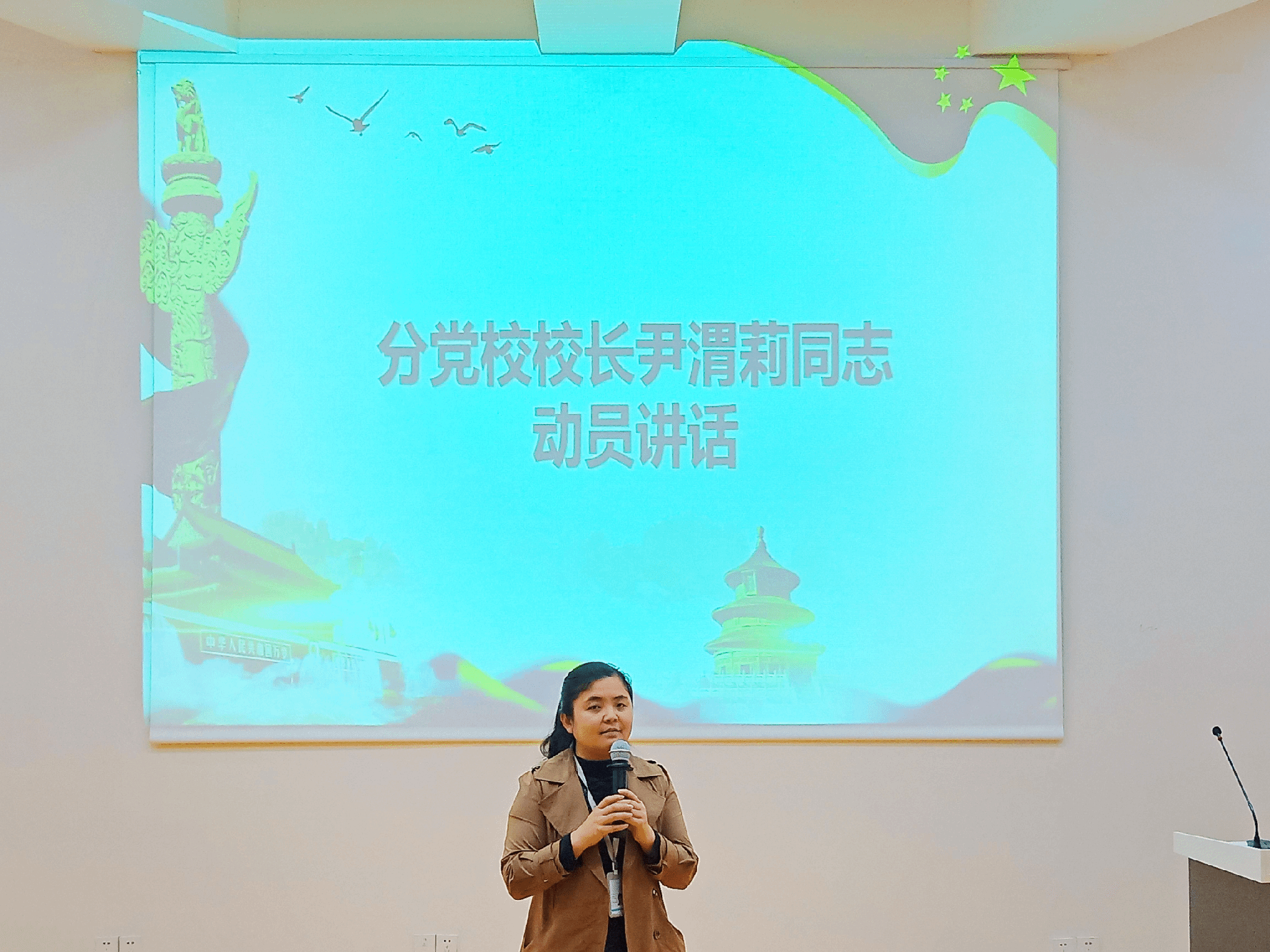 入党积极分子柯雅楠同学作为入党积极分子代表进行发言。她结合党员的要求和学生的实际,表明了自己入党的态度和决心。