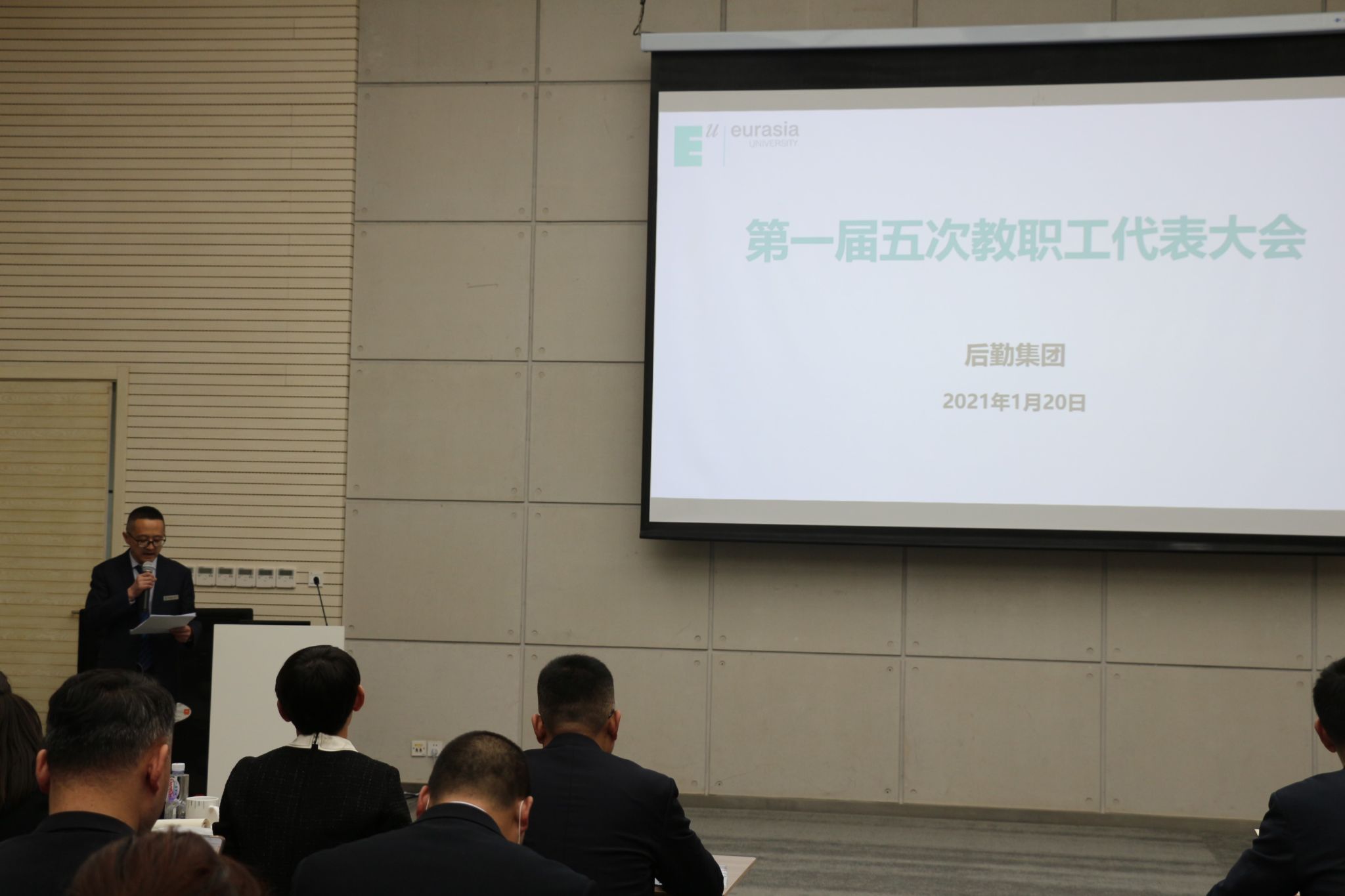 2021年1月20日下午,欧亚学院工会后勤集团分会(以下简称“后勤分会”)在大学生活动中心多功能厅组织召开第一届五次教职工代表大会(以下简称“教代会”)。
