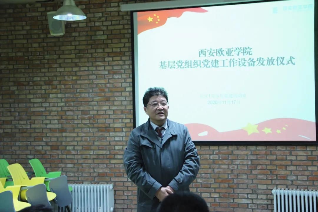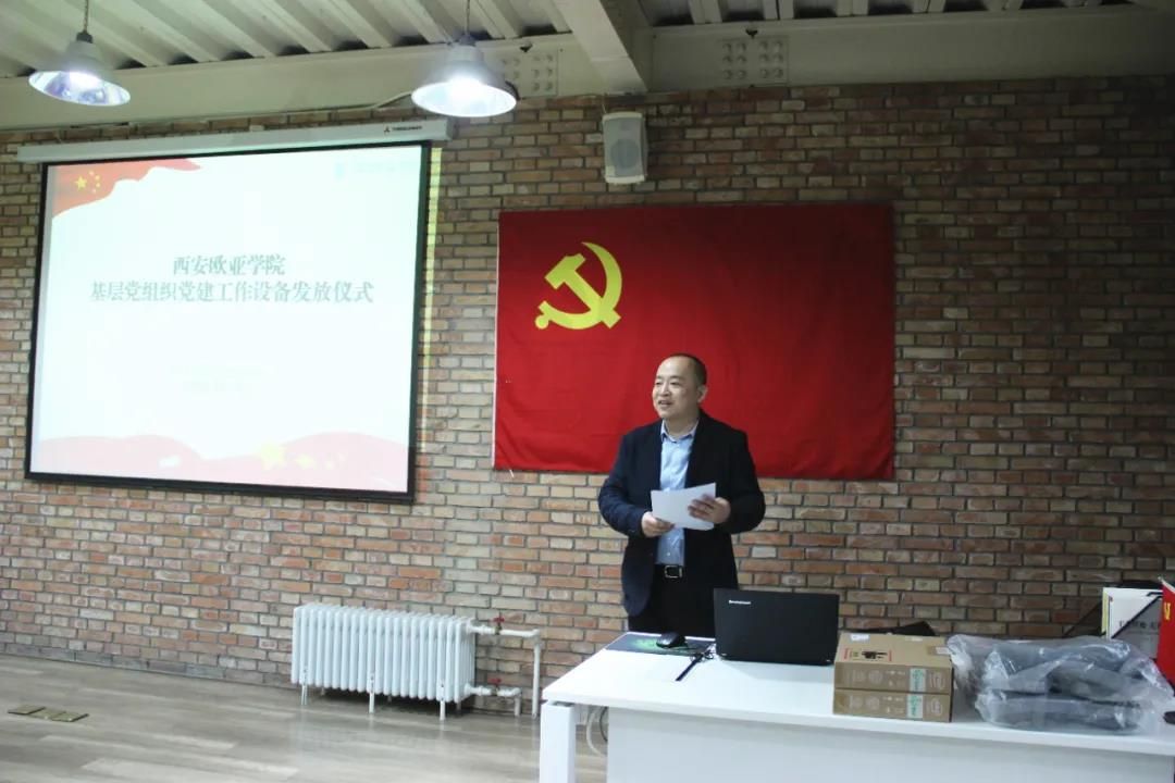 会上,与会领导向基层党组织代表发放了办公设备。赖志彬同志宣读《西安欧亚学院关于配发基层党组织党建工作设备的决定》(西欧党办字〔2020〕11号)。据了解,学校党委共计为29个基层党组织配备采购配备106台电脑和46个移动存储设备。