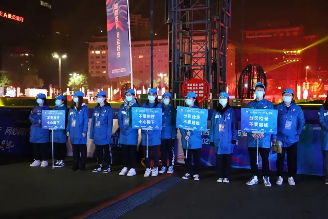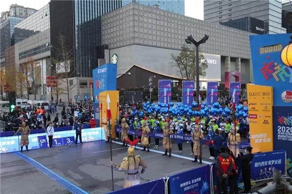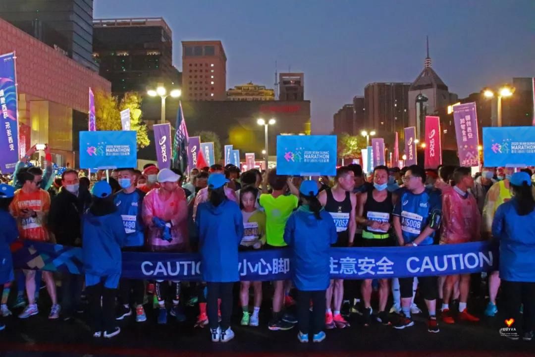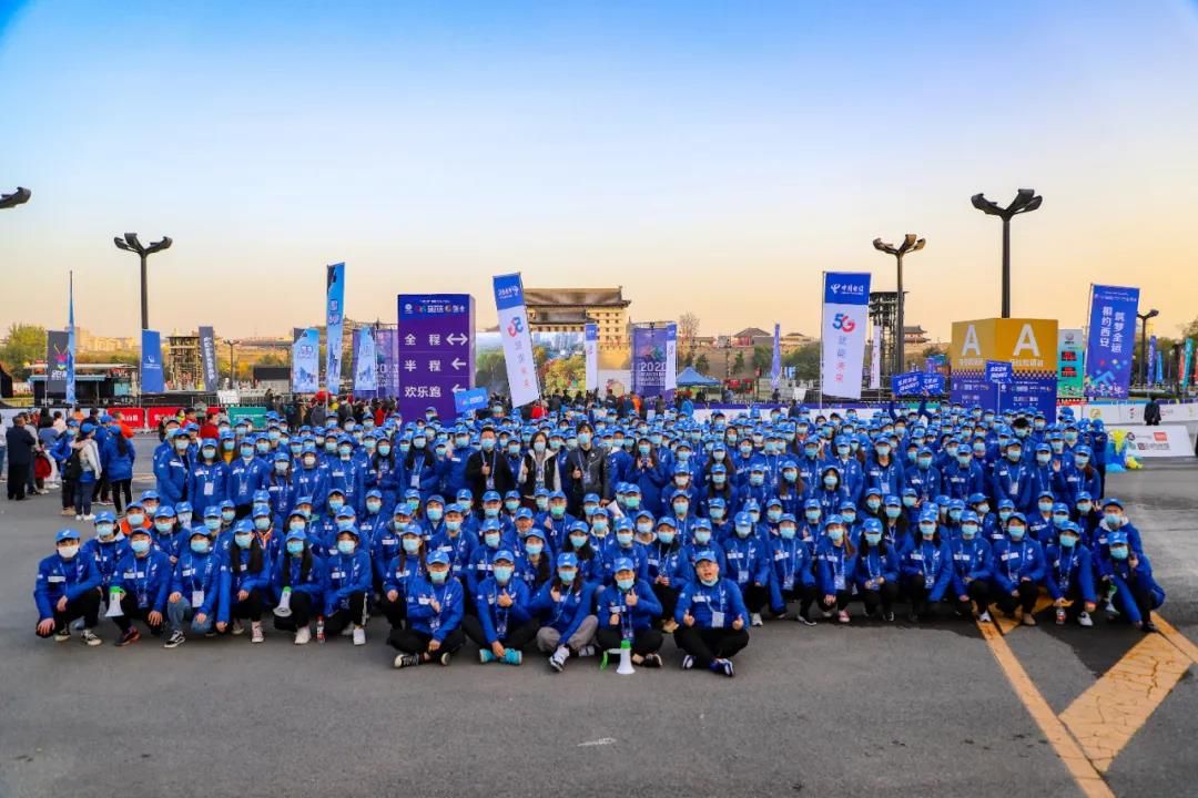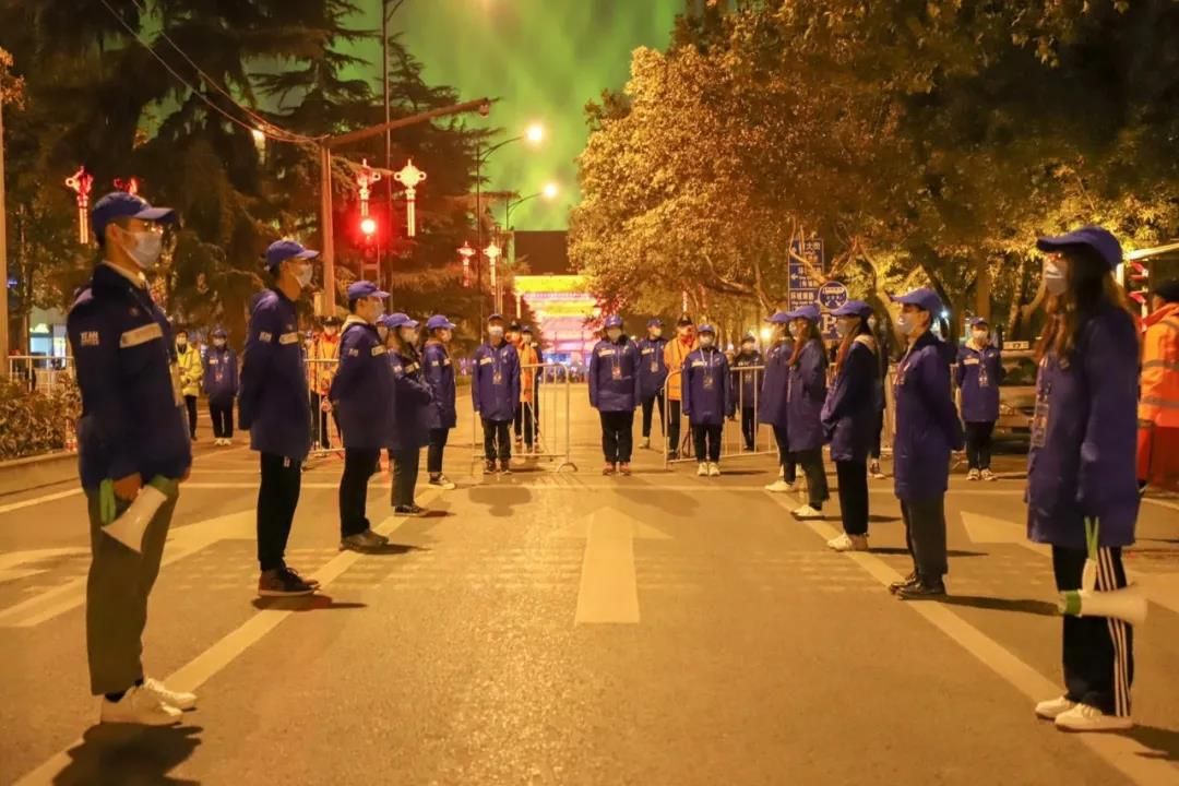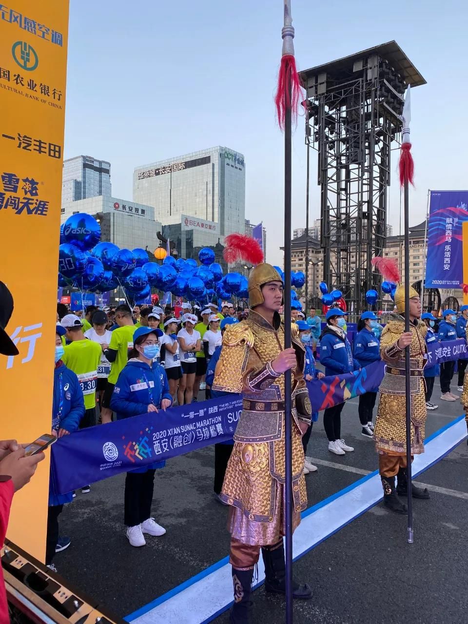 在马拉松的起点上,志愿者在自己的岗位上待命