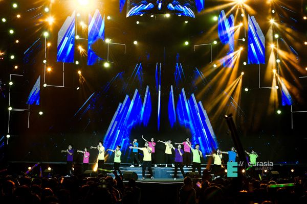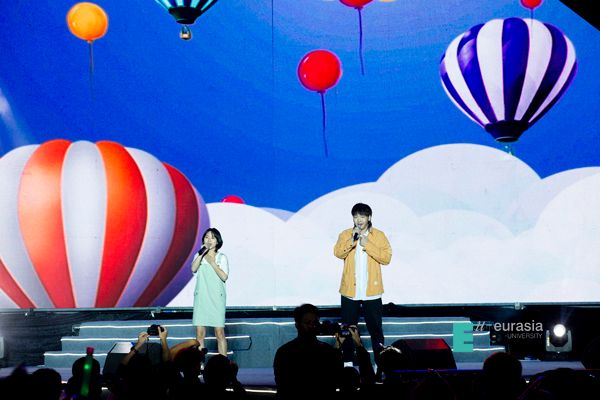 最后的大合唱《星辰大海》将歌会气氛再次引向高潮,我校建校25周年暨迎新生歌会圆满结束。整场歌会精彩不断,高潮迭起,赢得台下观众阵阵掌声和欢呼声。今晚,用短短近2个小时的时间,共演唱了18首不同语言的歌曲,展示了独唱、说唱、阿卡贝拉、小合唱等多种音乐形式。让观众们从歌声中感受到欧亚的同学们对欧亚的热爱、对音乐的喜欢、对艺术的追求!让观众们看到了欧亚学子用歌声表达了对欧亚文化的理解与展示,热情似火,活力四射,生动诠释了欧亚和而不同的教育理念。