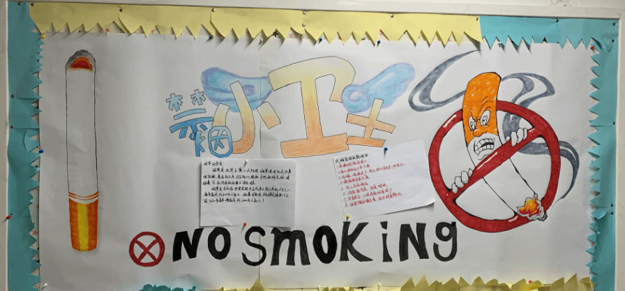 王宇欣:吸烟是一种有碍身体健康的习惯,会导致许多不文明的现象发生,对学生的身体健康,对环境卫生会产生许多负面影响,杜绝学生吸烟,体现了一种文明,一种秩序,一种进步。通过参与控烟软木板设计活动,我们深刻体会到烟草的危害,体会到禁烟活动的必要性,也让楼层的同学都可以了解到,小小的一根烟,背后有无穷无尽的危害,珍爱生命,远离香烟。控烟行动,从身边每一个人做起,防范和监督的责任落在每个人的肩上,使文明之风在我校内化于心、外化于行,维护师生的生命健康。