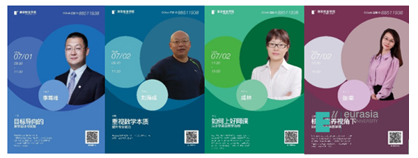 在接下来的四天里,老师们分别接受了“新时代背景下的师德师风建设”、 “联网+教研:面向新时代的发展”、“在线教学实操“、“从教材构架和知识整合的视角谈传授型教师向研究型教师的转型”、“中小学教研工作的有效开展”、“如何上好网课---以小学英语教学为例“、“核心素养视角下如何设计小学数学课”等一系列的课程。培训课程从师德师风建设到在线教学的具体实施,到包含语文、数学、英语等中小学所涉猎的基本学科内容的教研、实施等方面。