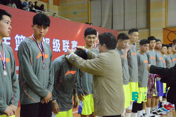 (图二)我校党委书记于孟晨为我校男子篮球队颁奖