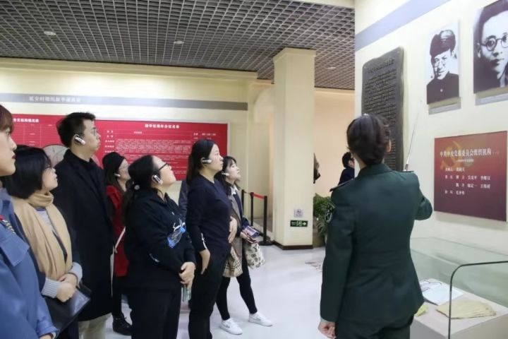 离开梁家河,全体党员分别参观了延安新闻纪念馆、延安革命纪念馆、枣园革命旧址。延安,中国革命的圣地。清凉山,新中国新闻出版事业的摇篮。在那个炮火纷纷的年代,一大批新闻工作者从这里把中国共产党人的理论、路线、方针、政策传播出去。延安新闻纪念馆内大量珍贵历史照片、文献等各类图表资料生动地再现了延安时期新中国新闻出版事业的发展历程和辉煌业绩。党员同志们在一幅幅珍贵的照片、旧物和新闻历史的还原场景前驻足端详,在馆内讲解人员的详细介绍下感受老一辈新闻工作者不畏困苦、迎难而上的伟大精神,受益良多。延安新闻纪念馆馆长讲到:“新时代新闻工作者要继续传承深入群众的精神,这也是新闻工作者的初心精神。”这句话让大家深感到作为新闻工作者肩膀的重担,也是一种由衷的激励。