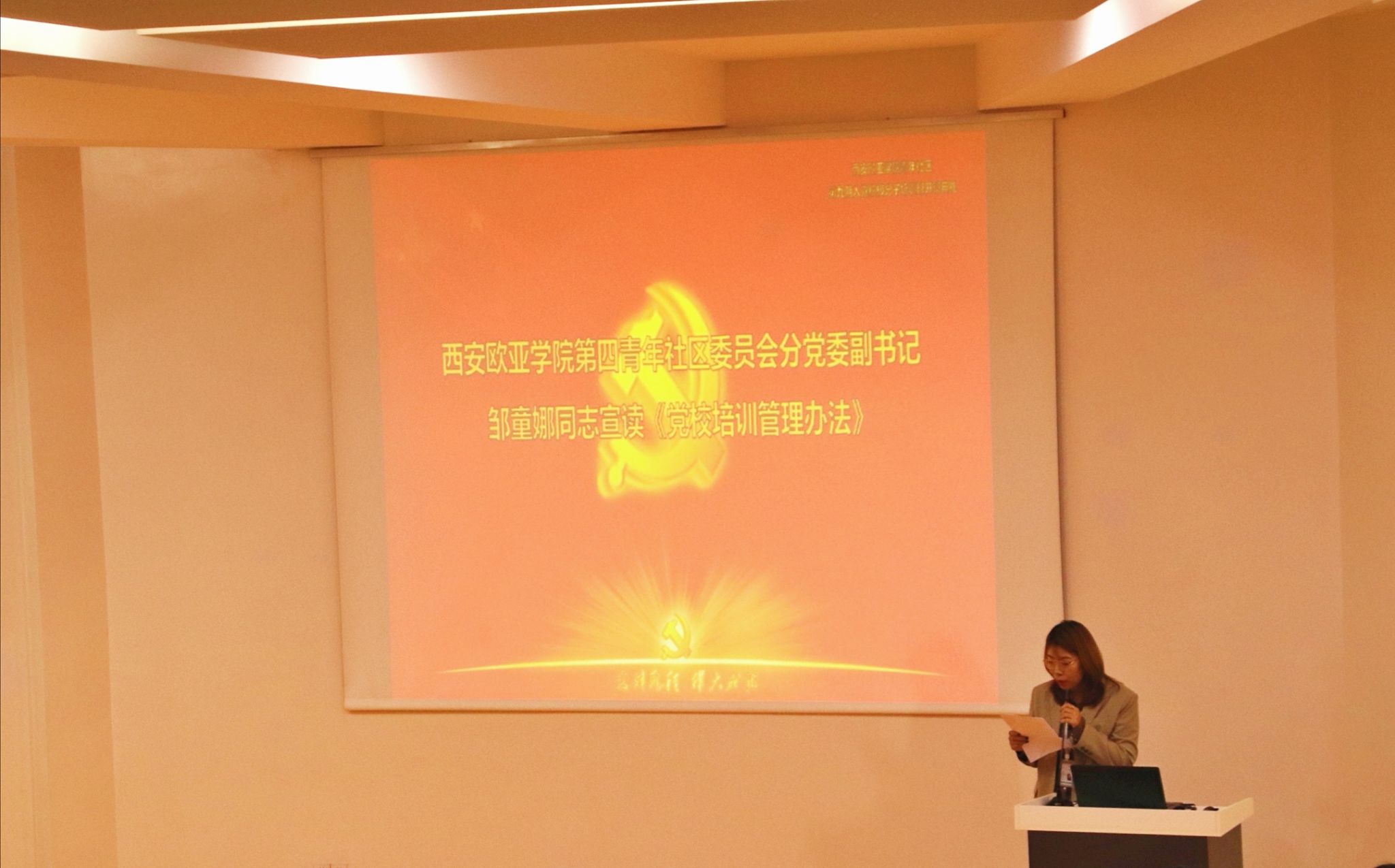 随后,第四青年社区分党委副书记邹童娜同志宣读《第四青年社区分党校培训管理办法》,明确了本次培训的纪律要求,并希望各位学员们能够严格遵守。