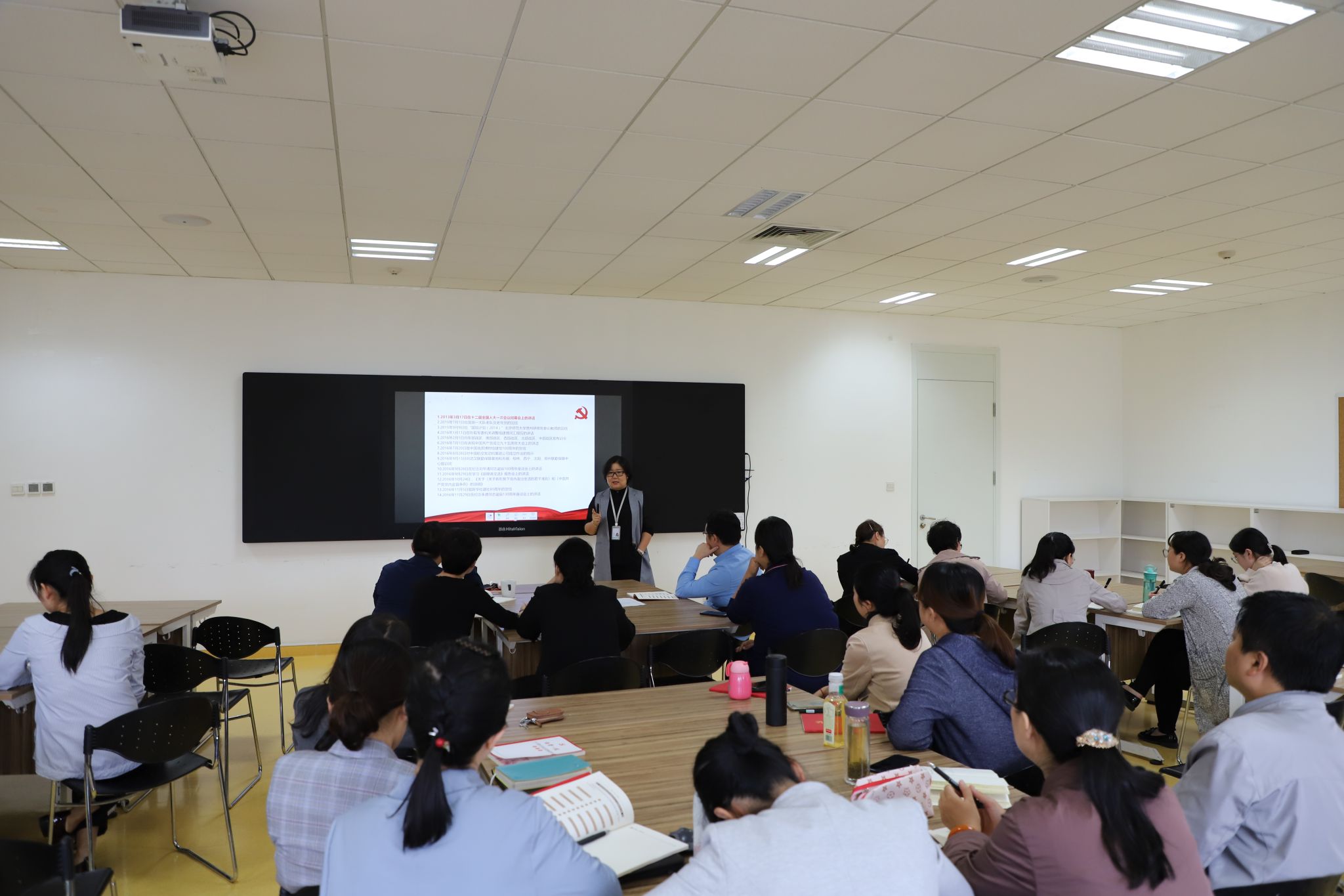 9月18日下午在教学南区D203教师培训室召开了分院全体党员大会,分院总支书记王艳同志作了“不忘初心,牢记使命”主题教育专题宣讲。会议由总支副书记马亚林同志主持,31名教工党员参加了会议。