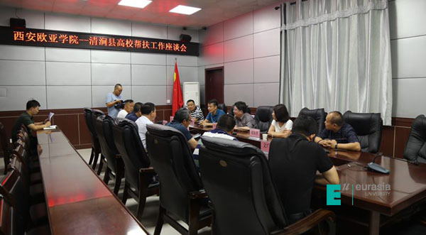 清涧县教育扶贫座谈会由清涧县县长助理、工业园区主任刘志龙主持。座谈会上,清涧县首先介绍了清涧县扶贫工作总体推进情况和近期国务院扶贫督察组来县上检查情况;清涧县教育局通报了上半年“双百工程”教育扶贫工作计划推进情况,全年7个培训项目,目前已经完成5个,效果明显,实践实训工作推进落实到位,学校为清涧县贫困大学生资助金额18万元,学校高度重视消费扶贫工作。学校通报了下半年教育扶贫工作重点,一是做好新入职和特岗教师的培训;二是继续做好志愿者帮扶服务;三是做好清涧县3.0版本宣传片的拍摄编辑工作;四是为清涧中学捐赠2000余册纸质图书和价值15万元的电子图书;五是聚焦做好消费扶贫,引导动员全校教职工积极购买清涧县农副产品,为清涧县早日脱贫做出贡献。学校党委书记于孟晨表示,学校在教育扶贫工作中坚持做到“带着一颗心来,不带一棵草走”,按照省“双百工程”精神,发挥我校教育资源优势,高质量完成学校与县上年初达成的教育帮扶计划。目前各项工作进展顺利,希望下半年继续跟进,把后续工作完成好。
