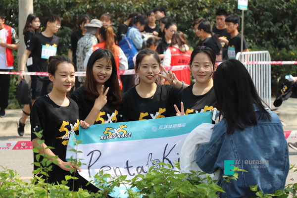 本次赛事作为欧亚春季体育节特色活动之一,面向我校全体学生开放报名,通过5X5团队接力的形式,完成环欧亚全程25公里赛程。近日,全校1000余人聚集于欧亚湖广场,随着发令嘉宾的鸣枪,我校首届校园马拉松拉开帷幕。