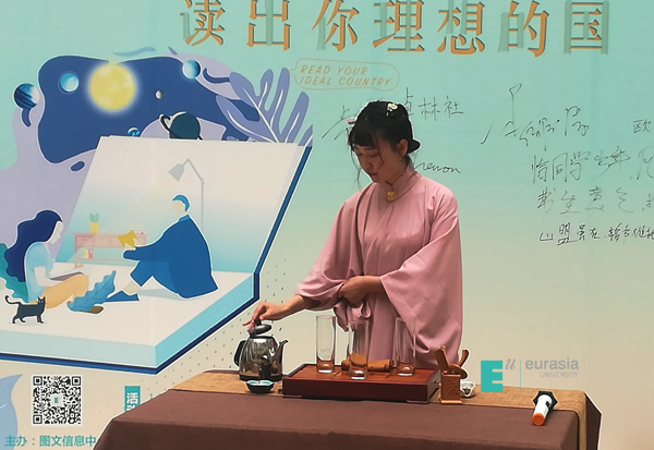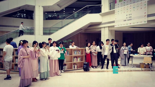 在第24个世界读书日来临之际,为了丰富同学们的课余生活,图文信息中心特举办“爱•分享”为主题的读书月活动,本次读书月共有11个主题小活动。4.23当天在图书馆大厅举办主题书展及“读出你理想的国”朗读活动,活动现场不但有茶艺和古筝表演,还可以穿上图书馆精心挑选的汉服在阅读体验区朗读诗书、回味经典,吸引了很多读者驻足围观;活动的第一个参与者是我校一位年轻教师,她觉得活动特别有意思,很喜欢图书馆的服务,便捷又贴心。活动提供的“阅读卡”和“汉服”受到了同学们的极大欢迎,不少同学都选择穿上汉服体验阅读,并在背景墙合影留念。本次活动旨在让大家体验中华传统文化的魅力,传承、弘扬传统文化。