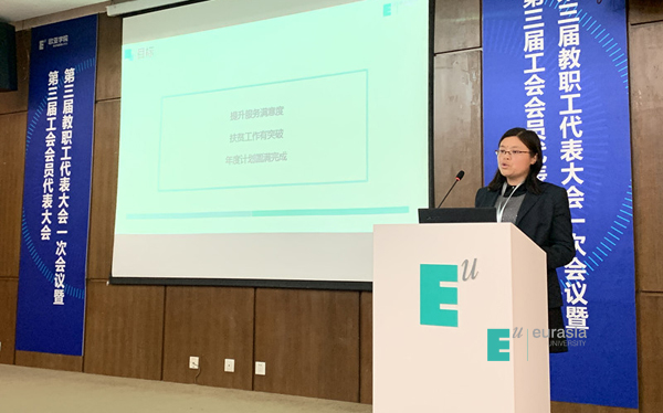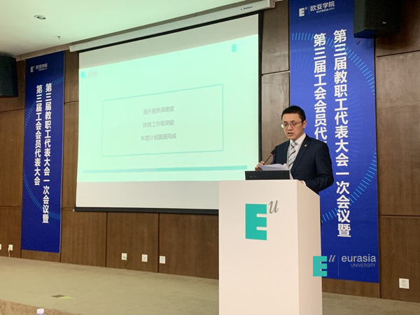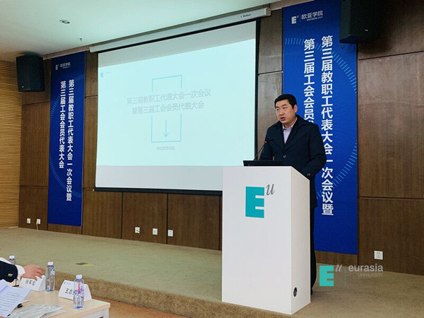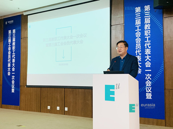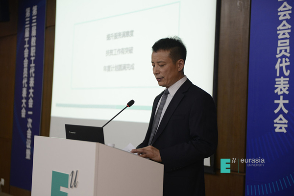 工会副主席晏建忠做《西安欧亚学院第二届(2014-2018年度)工会工作报告》以及《第二届五次教代会提案处理情况报告》和《第三届一次教代会提案征集情况报告》。