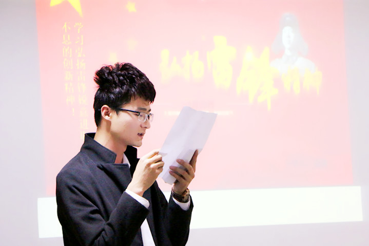 王祎珺同学分享了许多雷锋经典语录,如“人的生命是有限的,可是为人民服务是无限”,再次唤起我们对雷锋的记忆和思念;孟耿同学分享了雷锋同志的先进模范事迹,倡导大家学习雷锋同志锐意进取、自强不息的拼搏精神。张竞文同学、孟紫薇同学分享的《雷锋日记》和《话说之道》,赞美雷锋“赠人玫瑰手留余香,赠人微笑心留愉悦”的奉献精神,让更多的学生懂得怎样去关心他人,帮助他人。