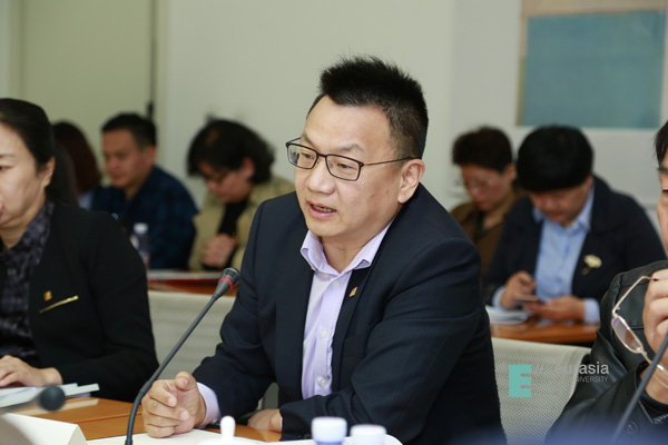 我校董事长兼院长胡建波就两位报告进行补充,强调做好人才工作,要有共享价值观,即欧亚学院价值观——责任、创新、伙伴、有用。他还提到办好应用型大学,真正需要提高的是教学质量及学生竞争力。同时,人才战略需要围绕核心目标开展,要始终学习人力资源的前沿理论,将教师为本放在工作主题首位。