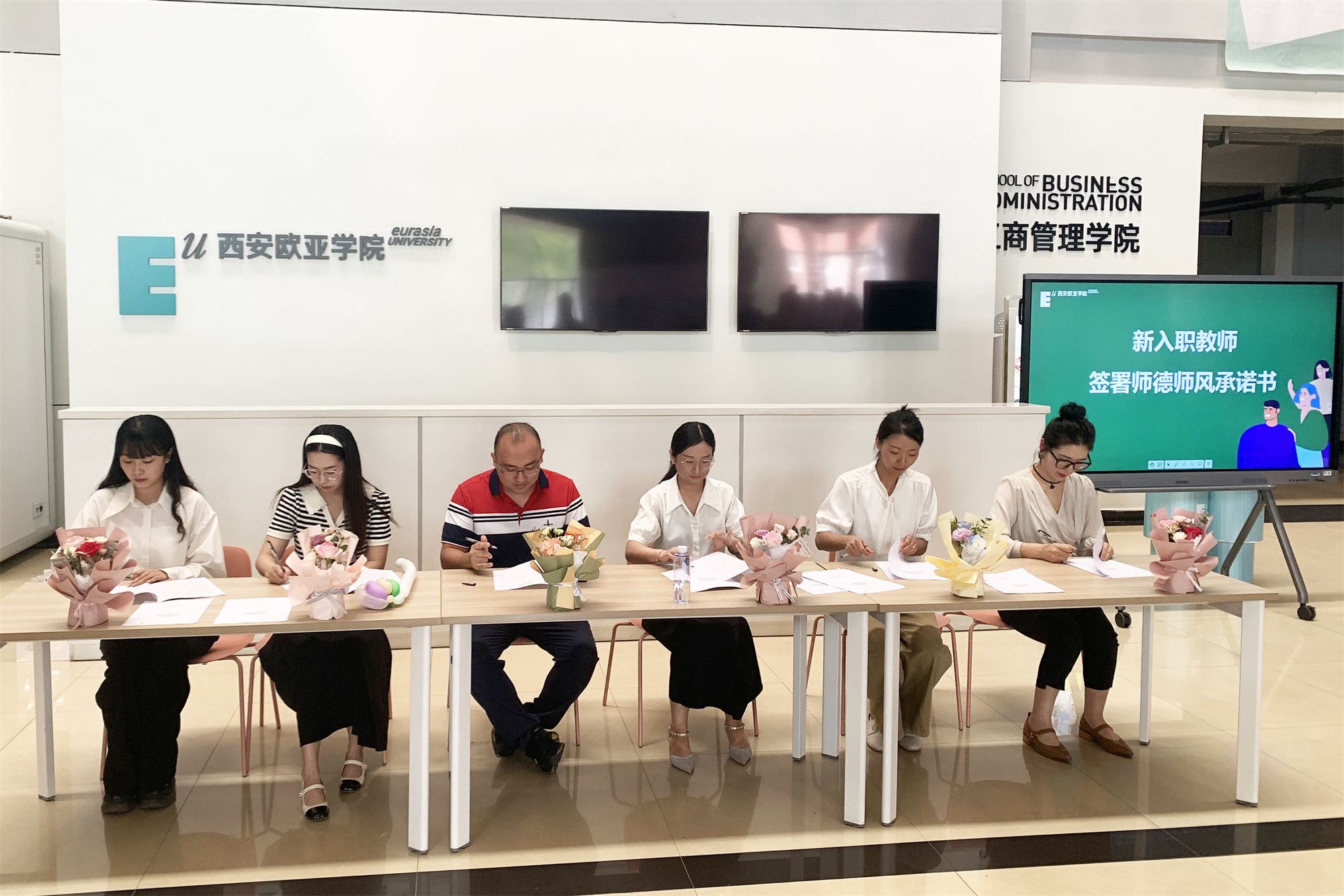 学校各部门以不同的形式与新入职教职员工签订了《师德师风承诺书》,并组织新进教职员工进行师德师风誓言宣誓。通过签署承诺书及宣誓,教职员工认真学习了《高等学校教师职业道德规范》和《新时代高校教师职业行为十项准则》,也对学校的文化、价值观等内容有了深入理解,这是对教师职业生涯的一次庄严承诺,对进一步提升教师的职业道德水平,树立良好的教师形象,促进师生和谐、校园和谐具有强有力的推进作用。