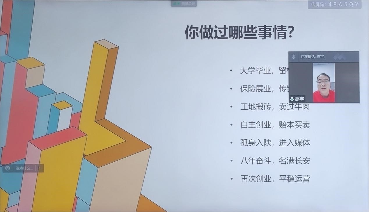为凝聚校友力量,促进校友之间的联系与交流,文化传媒学院于2022年11月11日下午举办“薪火相传,共创未来”校友企业主题沙龙及媒体校友圆桌派活动。西安欧亚学院校友会负责人余斐虎老师、文化传媒学院院长助理曹小娟老师、文化传媒学院合作与发展中心主任左伟老师、实践课程组全体教师与26位优秀文传校友通过线上线下联动的方式,追忆往昔,畅所欲言,共谋发展。