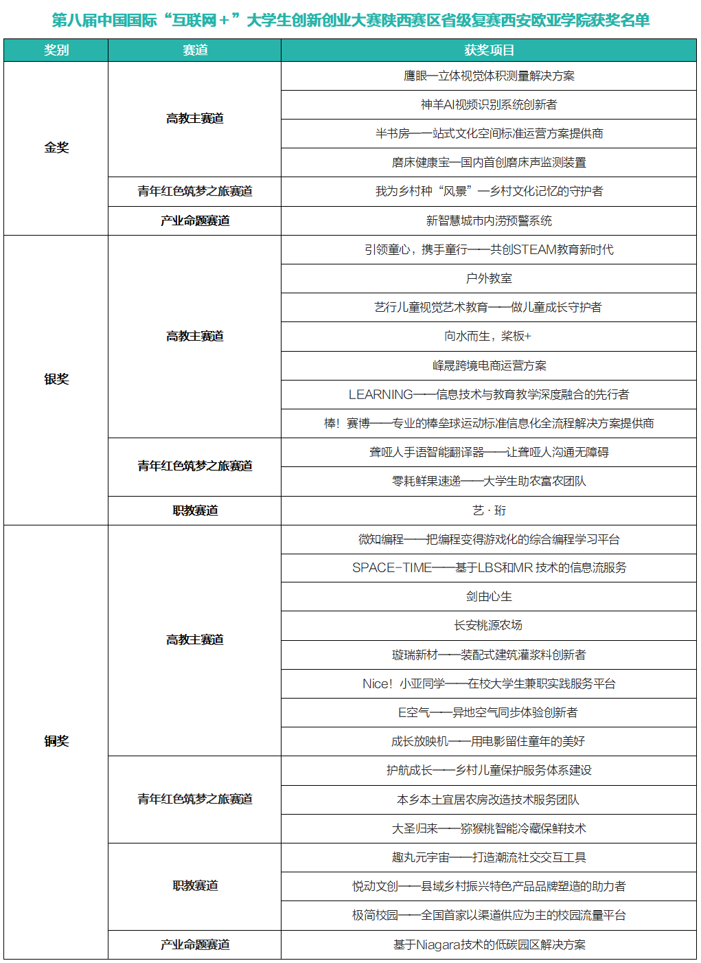 此次中国国际“互联网+”大学生创新创业大赛再次取得优异成绩,是西安欧亚学院长期坚持“应用型”发展定位的最好检验:通过真实项目研发,培养学生创新精神、创业意识和实践能力,以学促产,为社会发展贡献欧亚力量。