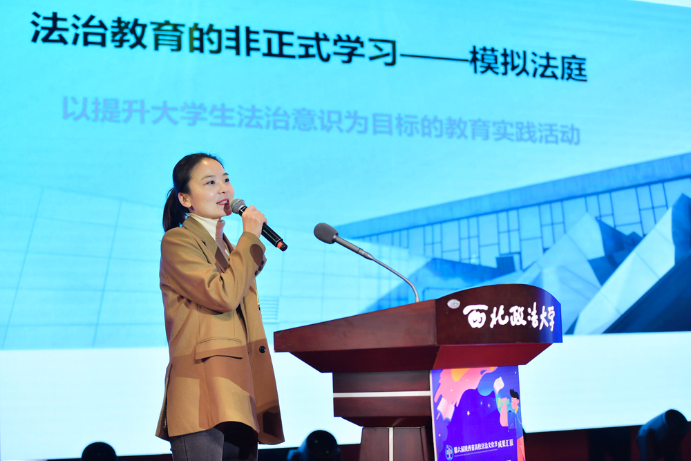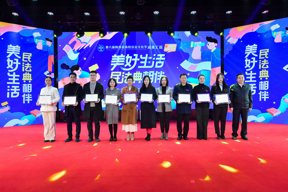 本届高校法治文化节以“美好生活·民法典相伴”为主题,采用线上和线下并行的方式,充分运用新媒体新技术,深入开展多个法治宣传和法治文化活动。当日活动对高校“十佳创新普法活动”“五个一”优秀作品、“法典先锋”冲关答题挑战赛获奖选手、第六届陕西省高校法治文化节优秀组织单位进行了表彰。我校是唯一分享发言的民办高校。