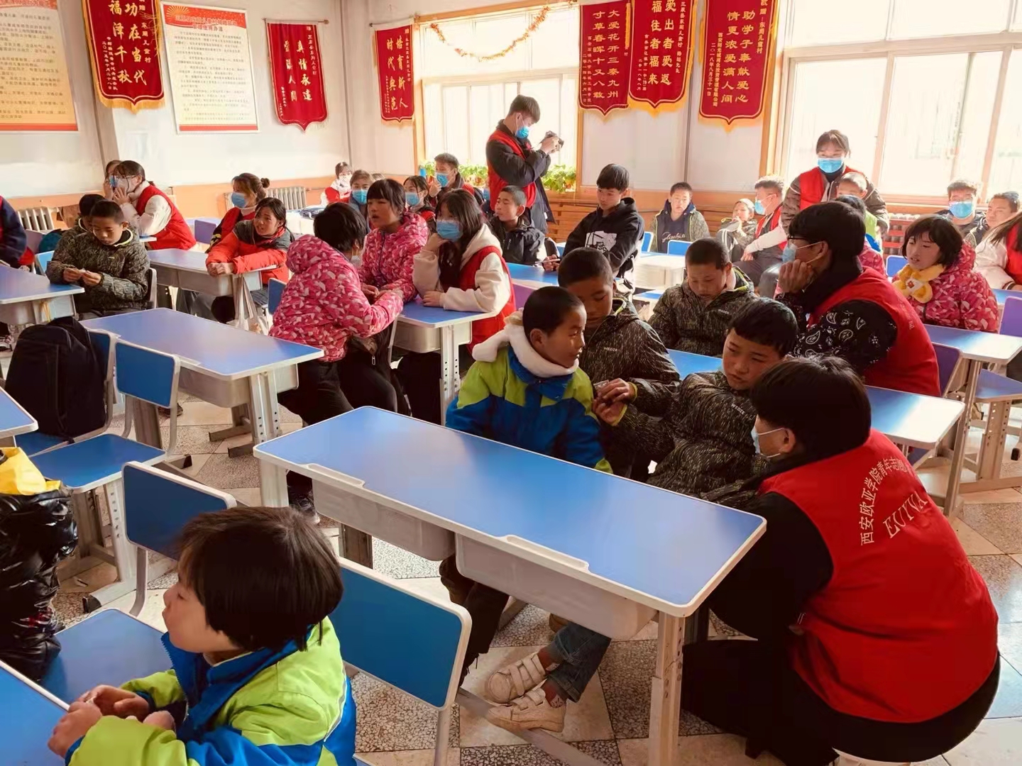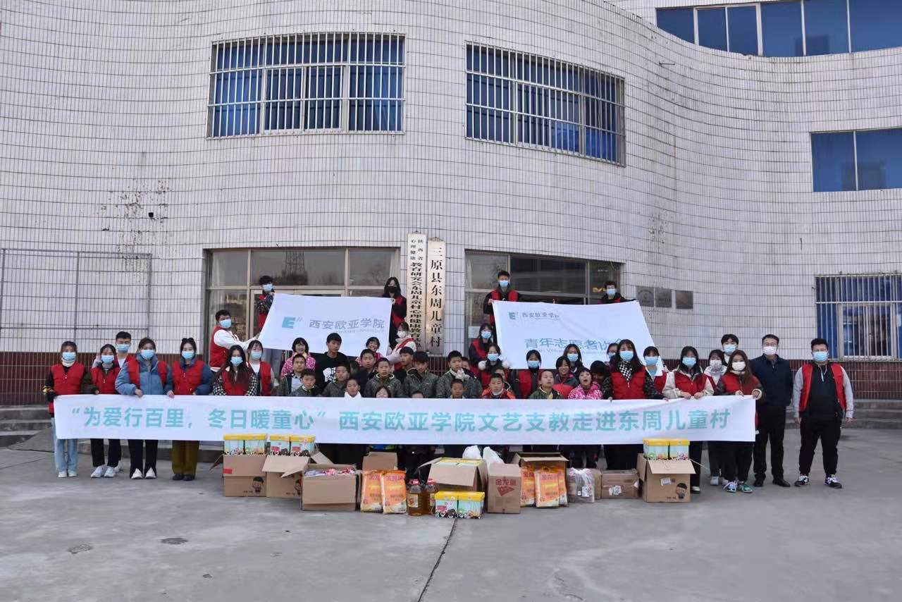 12月5日国际志愿者日,我校组织了30名学生志愿者,在校团委张浩博老师的带领下,来到陕西省咸阳市三原县东周儿童村开展“为爱行百里,冬日暖童心”文艺支教活动。我校为东周儿童村捐赠了米面油等生活物资,并为儿童村的38名小朋友分发了精美文具和零食礼包,希望这些物资能够在孩子们的学习和生活上起到一定帮助。
