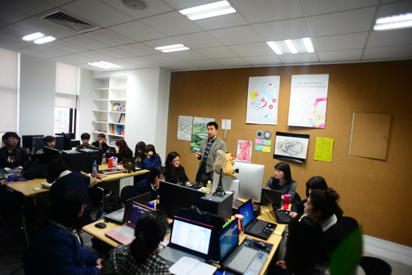 工作室是艾德艺术设计学院与法国勒阿佛尔国立高等美术学院联合创办。以培养既有实际创意、美术技能,又有科技应用知识技能的现代设计师为教育宗旨,积极探索符合国际现代设计教育体系的工作室之路。新媒体交互设计工作室的建立与教学模式的改革,是对主宰学院的传统授课方式的冲击。在这里,教师采用“包豪斯”教学的授课方式,根据学生特长分别进行“师徒式”教育。在通过对学生的教学完成既定教学任务的基础上,增加以项目为课题的实践工作,完成创意与制作的环节。