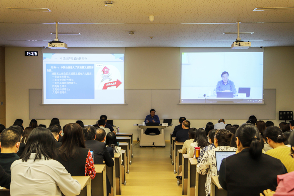 讲座由学校党委书记、党史学习教育领导小组组长于孟晨主持,学校商科专业教师、基层党组织书记及教工党员代表参加现场学习,其他师生通过在线方式同步学习。