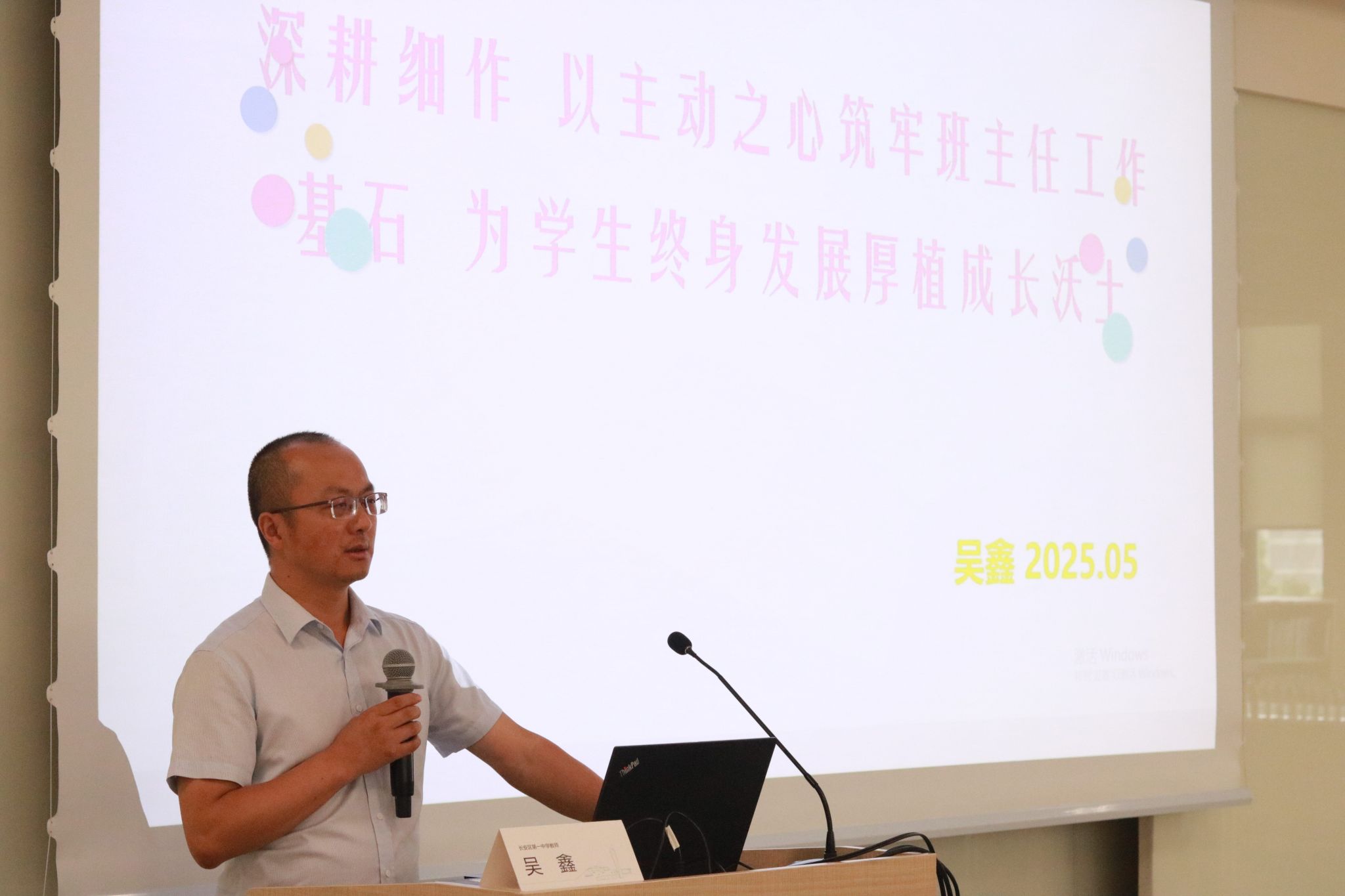 长安区第一中学教师、“西安市骨干教师”、“西安市优秀班主任”、“西安市德育先进工作者”吴鑫从不同的视角详细介绍了如何做好一名优秀班的主任,他强调:作为一名优秀班主任需在琐碎的工作中具备超强的责任心与耐心,以强烈的责任感关注每一位学生成长,细致观察、耐心引导;要深入了解学生的成长特点,平等交流并有效协调家校资源,与家长形成合力;在与学生的相处过程中,以慈爱、公平,讲原则的态度对待学生,不贴标签、不偏袒,注重激发学生个体潜能;要善于反思与创新,持续优化改进管理策略,结合实际总结反思,提升教育理念的适应性与科学性;班主任作为一名教师,更需兼具扎实的专业知识、稳定的心理素质及阳光向上的榜样力量,促进学生全面发展。