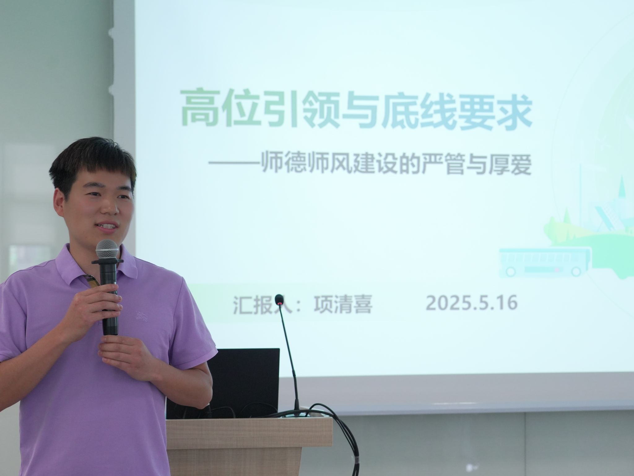 我校马克思主义学院副教授项清喜以“高位引领与底线要求——师德师风建设的严管与厚爱”为主题,对学员们进行了宣讲,他强调:师德师风建设需要坚持严管与厚爱的统一,注重高位引领与底线要求的融合。从“是什么:异与同”、“为什么:内与外”、“怎么办:收与放”的叙事逻辑展开,回应一线教师的真困惑、实问题,将政策宣讲、纪律要求与实际工作有机结合,入脑入心、效果良好。