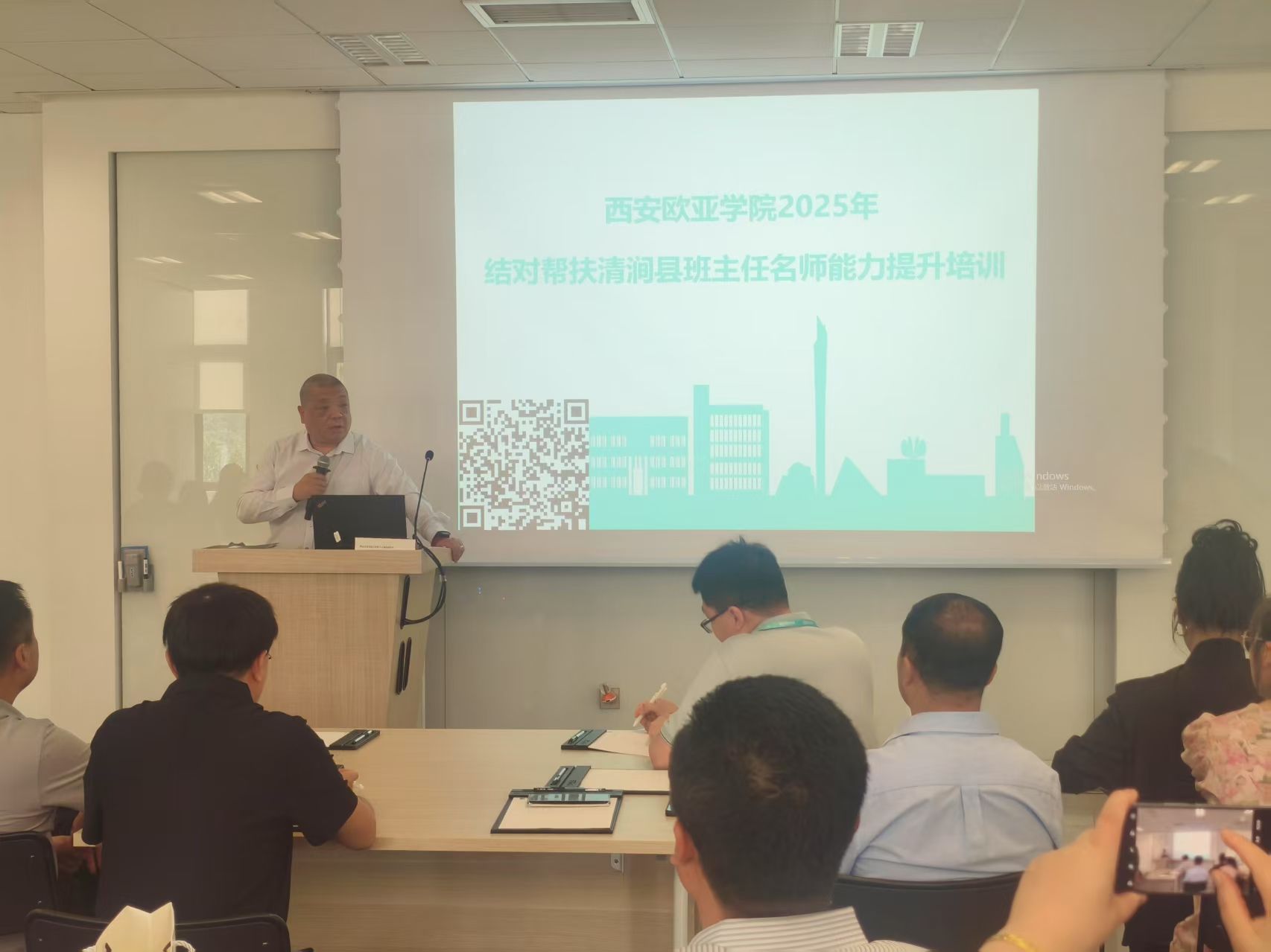 在学校工会、科研处、文化传媒学院及清涧县教育和体育局的协同努力下,经过近2个月的精心组织和准备,西安欧亚学院2025年结对帮扶清涧县班主任名师能力提升培训在我校成功举办。