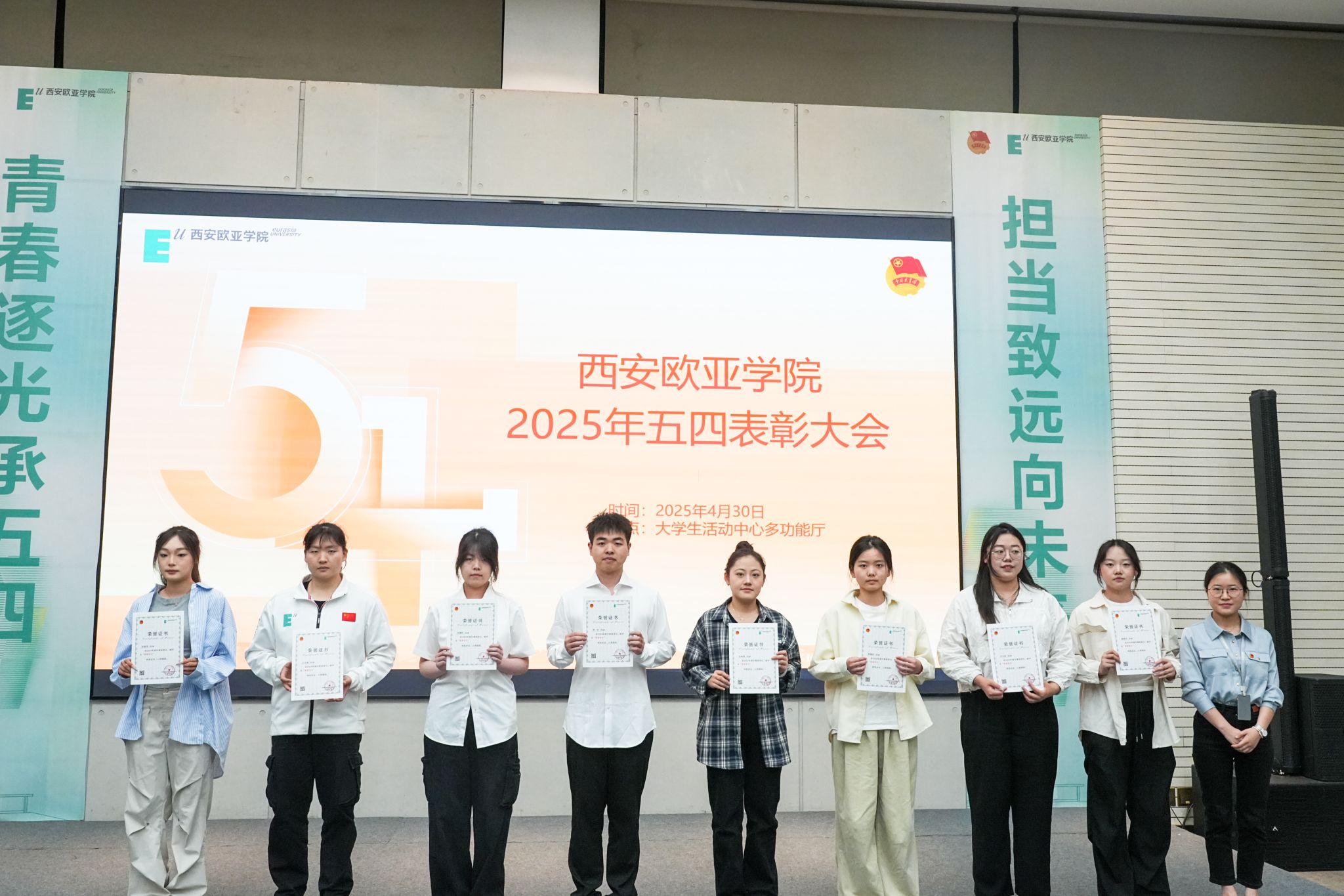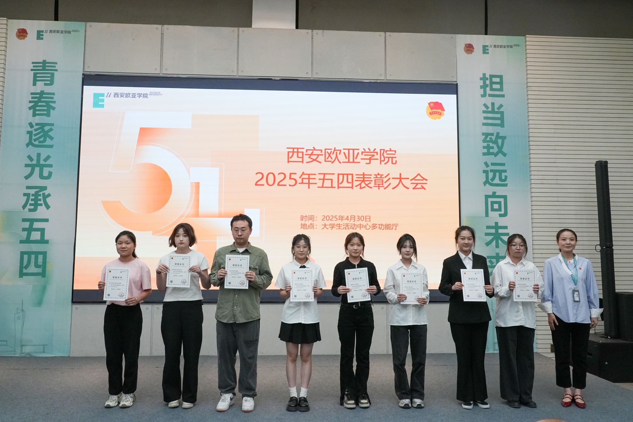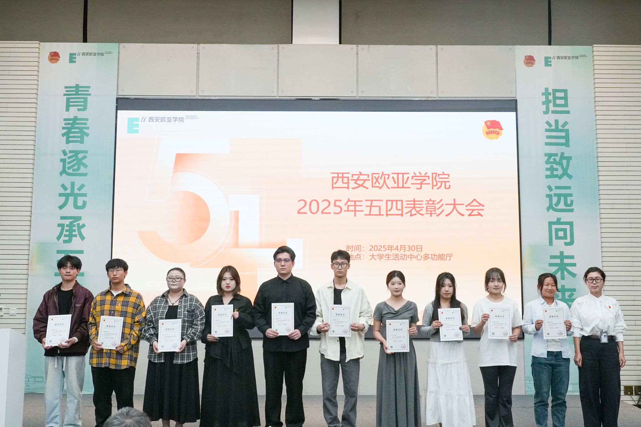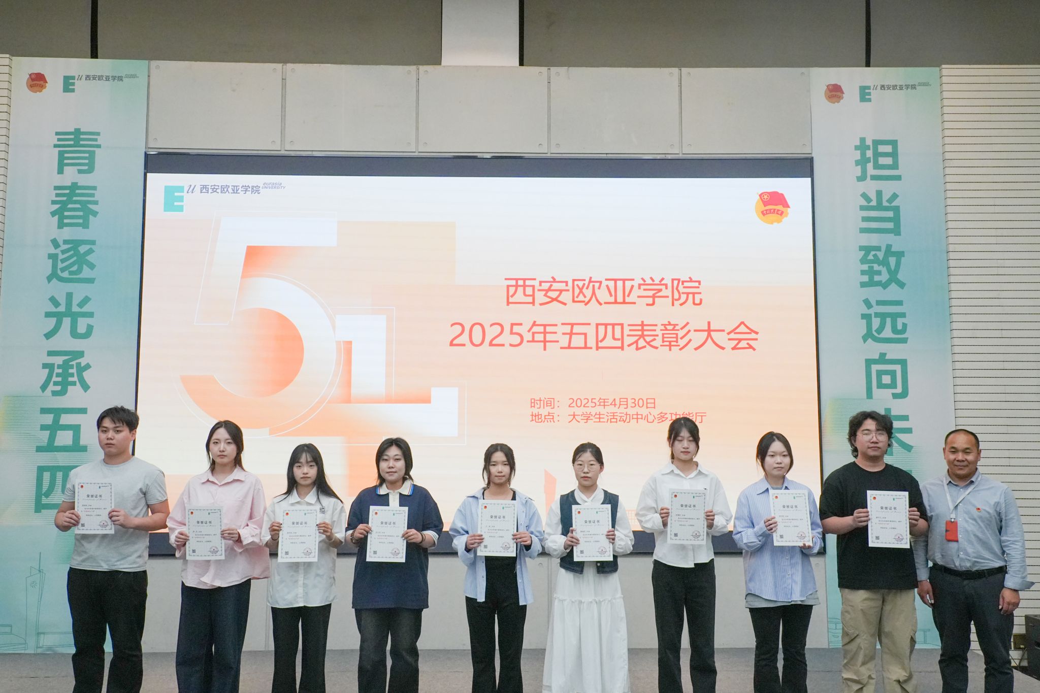 三十载砥砺前行,五四火炬照亮青春征程。为充分发挥模范引领作用,激励广大青年奋发有为,30日下午,五四表彰大会在西安欧亚学院大学生活动中心多功能厅顺利召开。出席此次大会的有校党委副书记、副校长张军宏,校党委办公室主任赖志彬,校团委书记、学生发展处处长董杨,学生发展处处长助理李嘉瑜,各青年社区分党委书记、分院学生事务中心主管、校团委干部、各青年社区团委书记、各分院学生成长促进会指导老师以及获奖师生代表。此次大会由校团委副书记李艳主持。