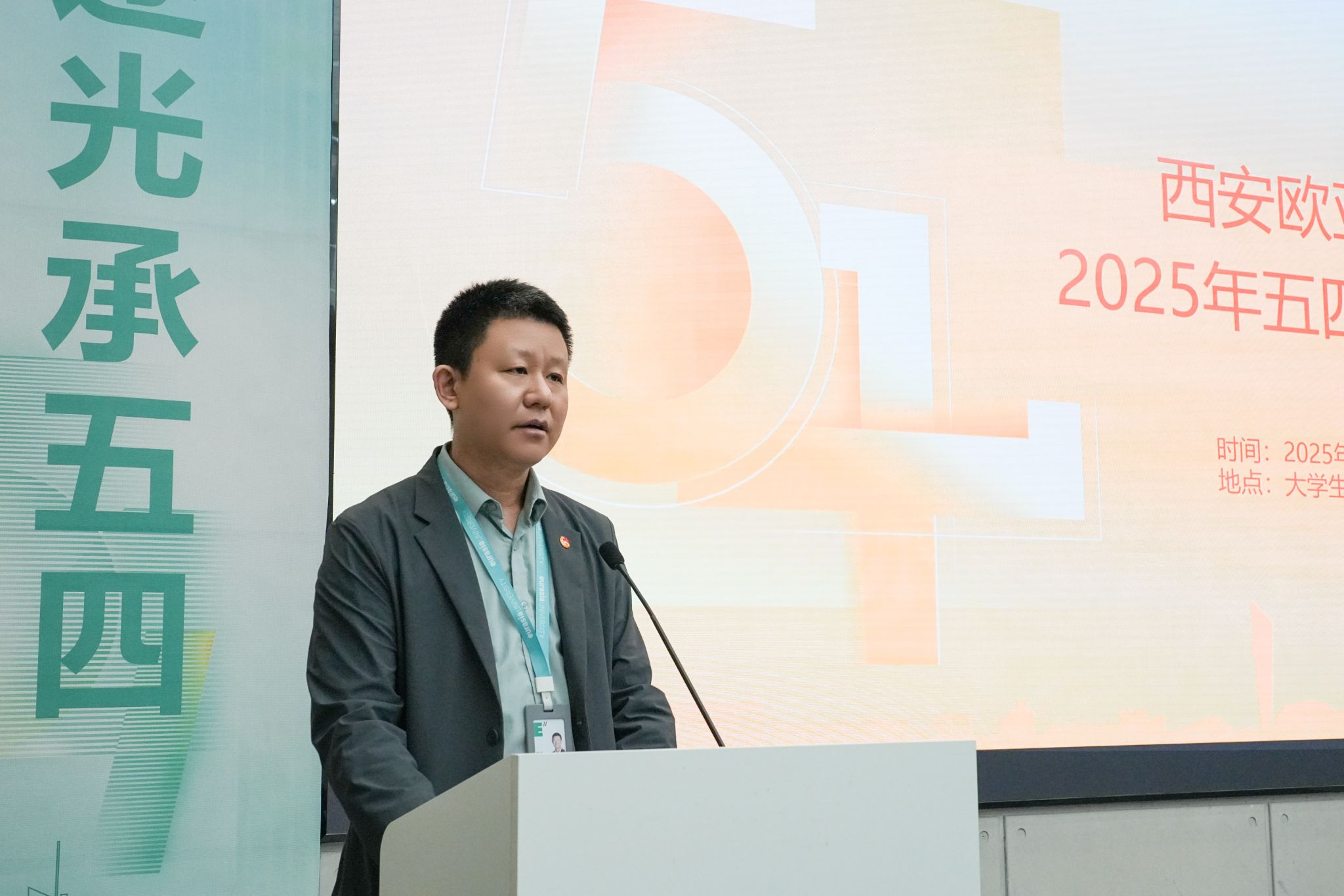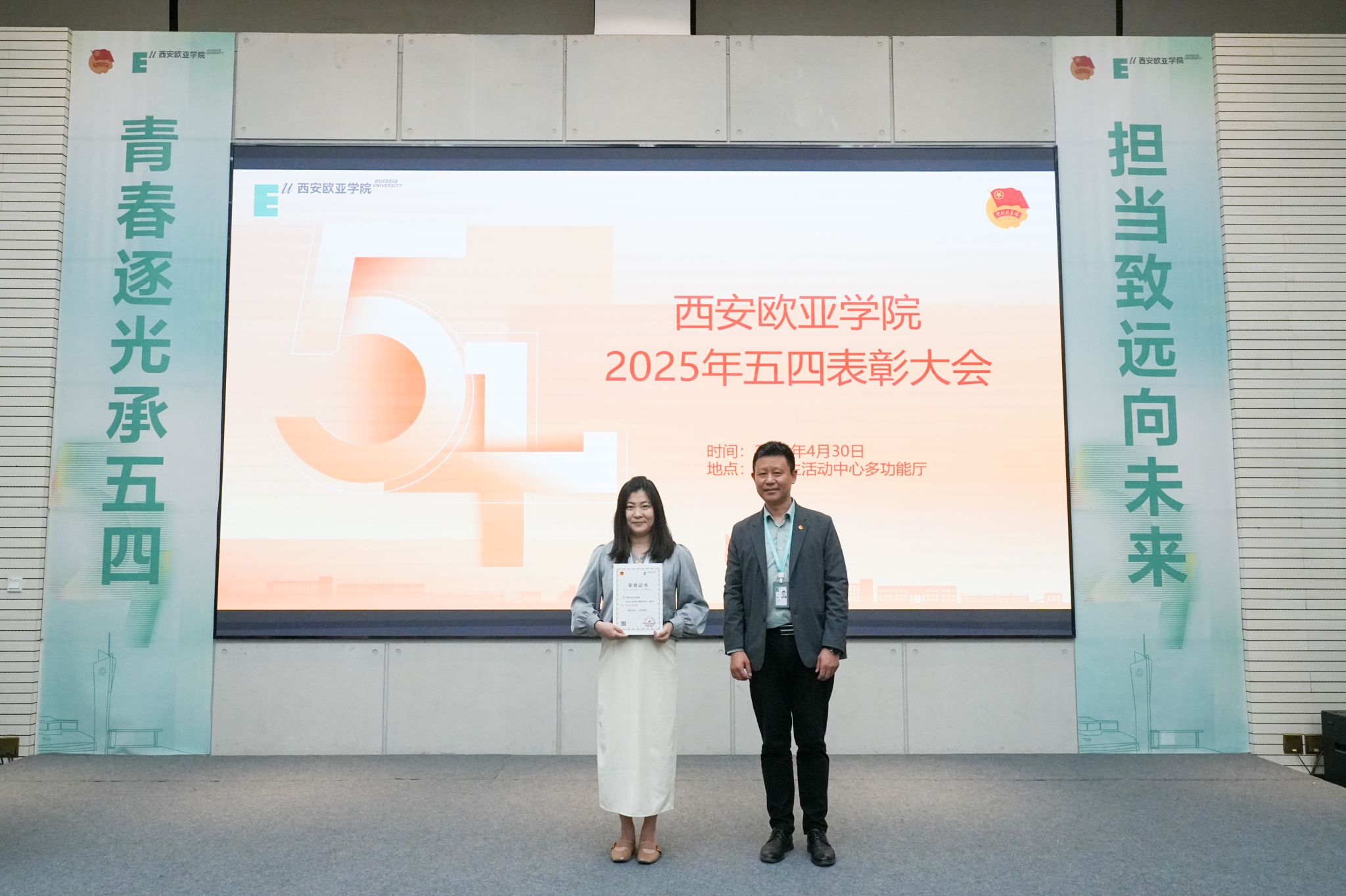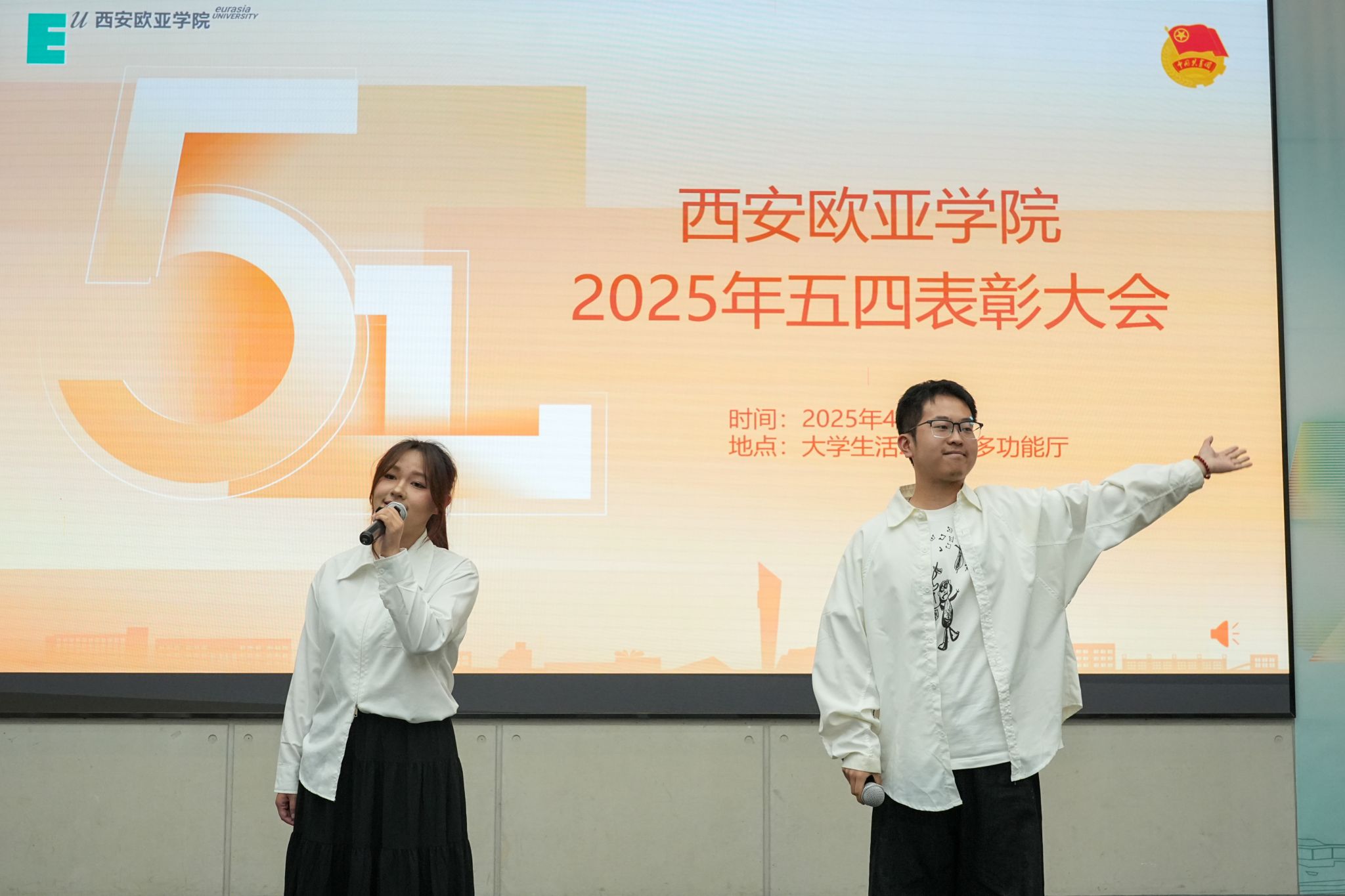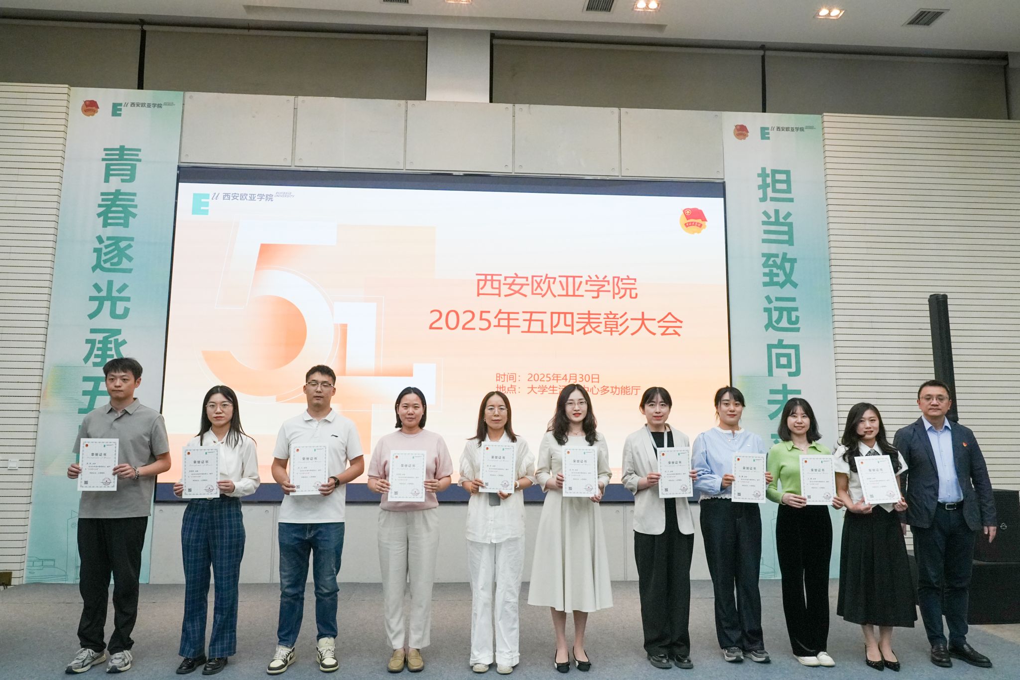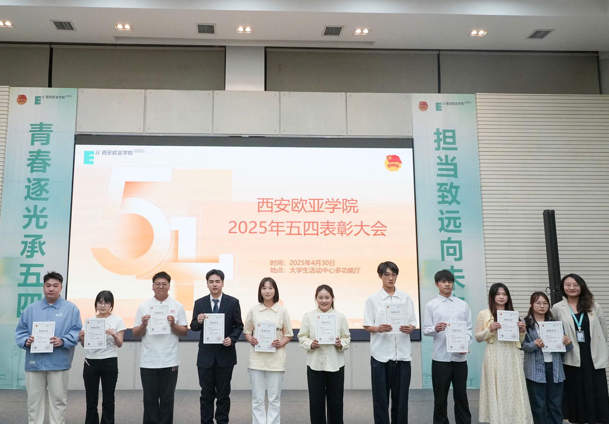三十载砥砺前行,五四火炬照亮青春征程。为充分发挥模范引领作用,激励广大青年奋发有为,30日下午,五四表彰大会在西安欧亚学院大学生活动中心多功能厅顺利召开。出席此次大会的有校党委副书记、副校长张军宏,校党委办公室主任赖志彬,校团委书记、学生发展处处长董杨,学生发展处处长助理李嘉瑜,各青年社区分党委书记、分院学生事务中心主管、校团委干部、各青年社区团委书记、各分院学生成长促进会指导老师以及获奖师生代表。此次大会由校团委副书记李艳主持。