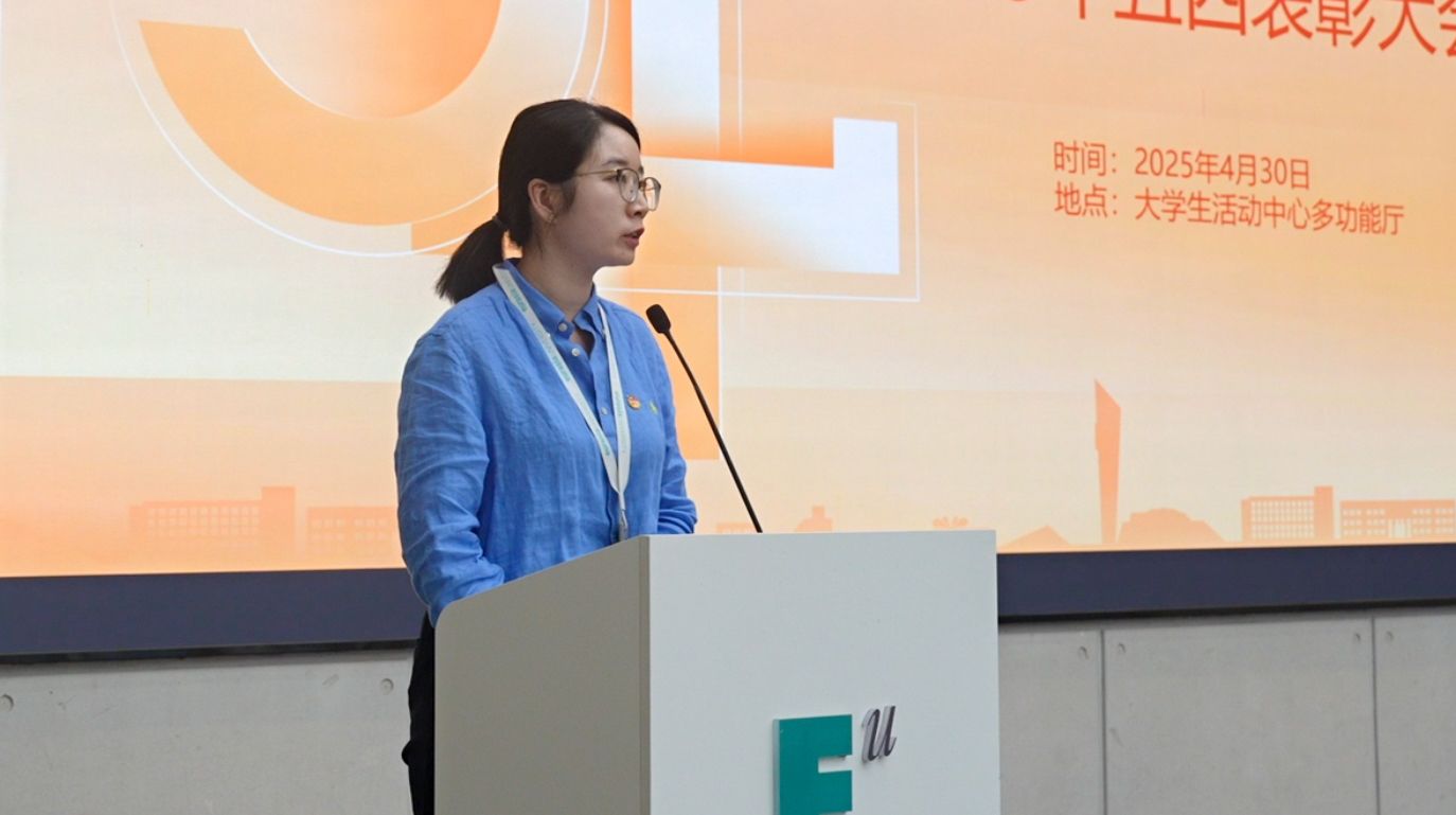 (图一)校团委副书记李艳主持此次五四表彰大会