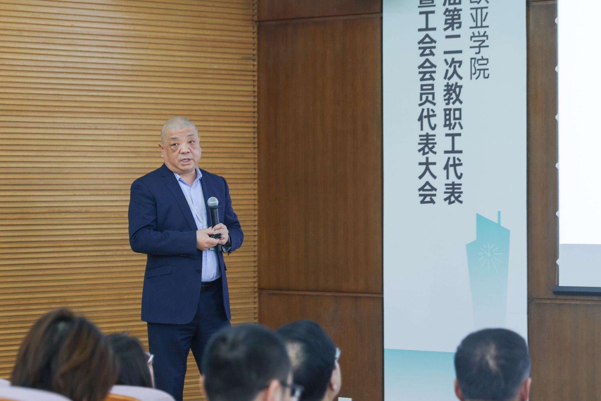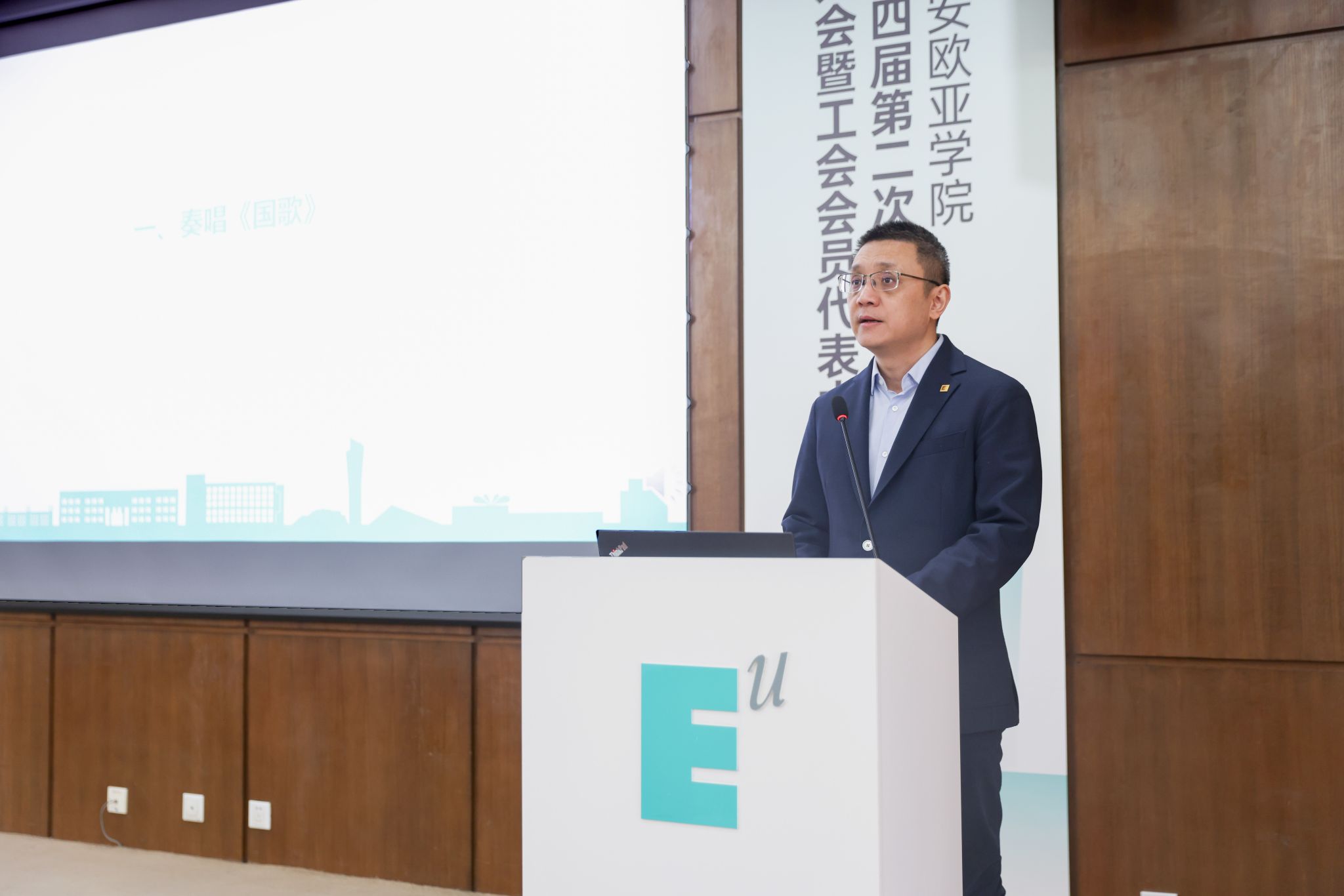 党委书记赵国华致闭幕辞,他对工会的成绩给予了充分肯定,工会的“四个职能”作用明显,特别在民主管理、为教职工办实事、提升教职工幸福感等方面做了大量工作;在乡村振兴工作中,我校帮扶的子州县前淮宁湾村乡村振兴产业落地,被省市县评为先进单位,“双百工程”连续七年荣获全省先进单位。他希望校工会在上级工会和学校党委的领导下,在校董事会的大力支持下,立足学校战略目标,全面贯彻党的二十大和二十届三中全会精神,贯彻落实全国、全省教育大会精神,在坚定信心中汇聚力量,在开拓进取中实现目标,以人人都是奋斗者、个个当好实干家的崭新姿态,共同书写西安欧亚学院高质量内涵式发展新篇章,以优异成绩迎接建校30周年!