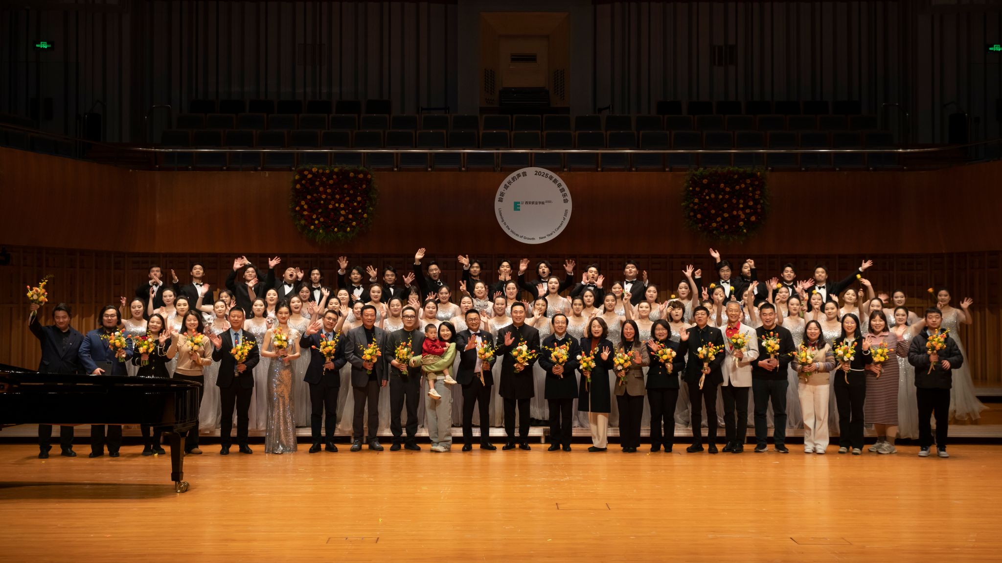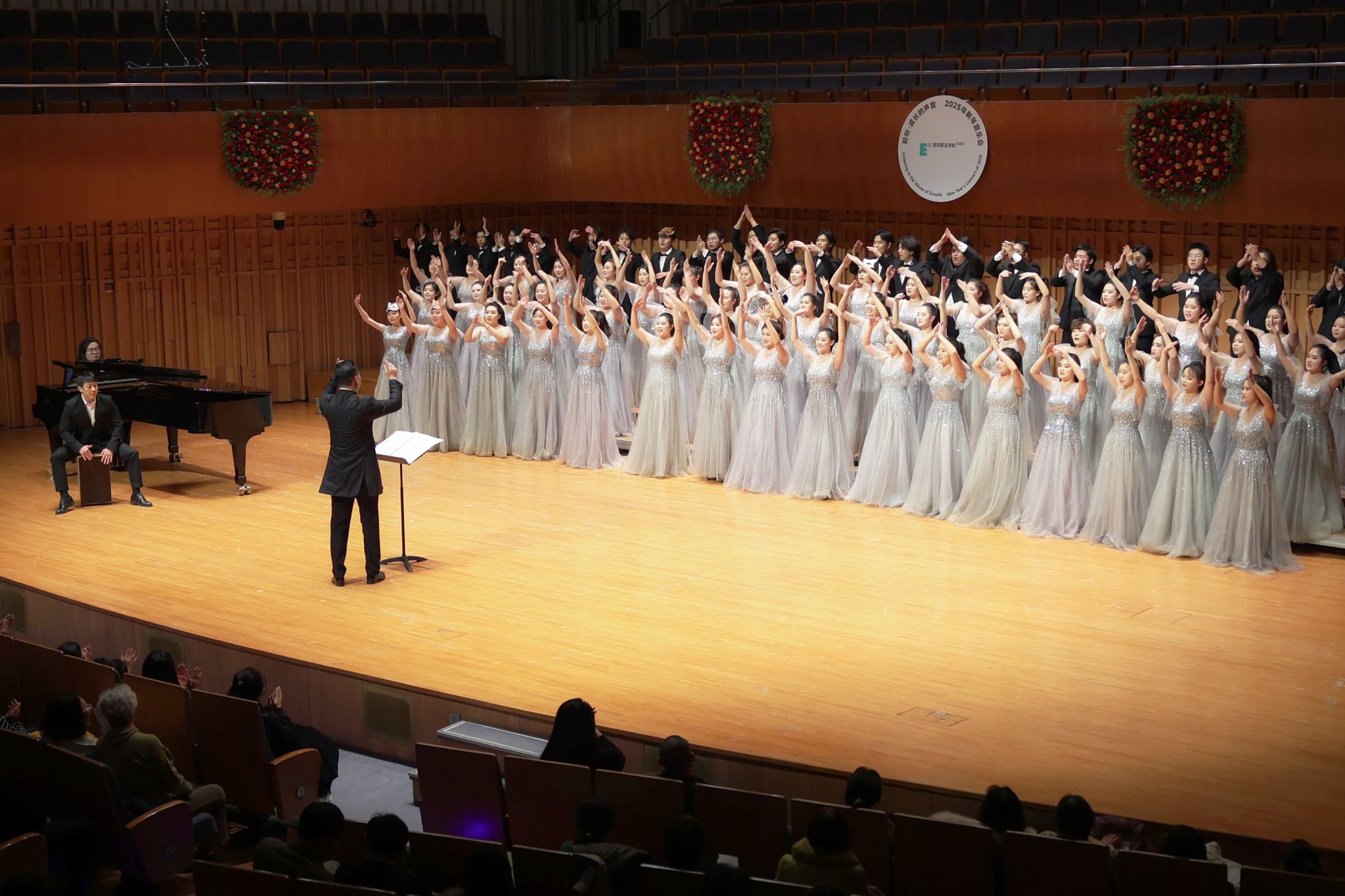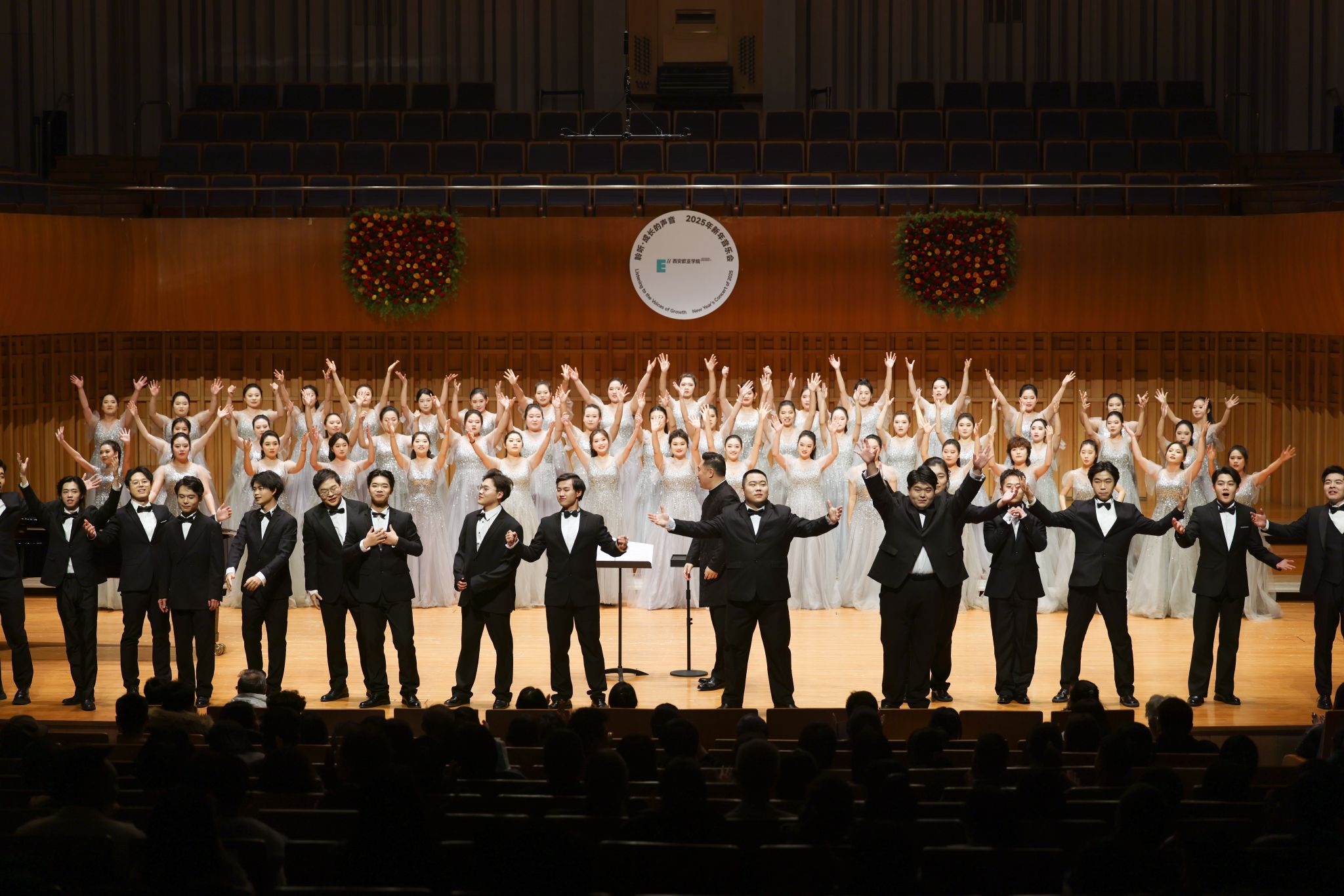 12月25日晚,西安音乐厅,西安欧亚学院2025新年音乐会浪漫上演。热情奔放,细腻灵动、轻快悠扬的合唱与演奏曲目交织,欧亚合唱团70余名学生为现场的西安市民、校企合作伙伴和关心欧亚发展的朋友们,奉献了一场讲述成长故事、畅想美好新年的精彩视听盛宴。