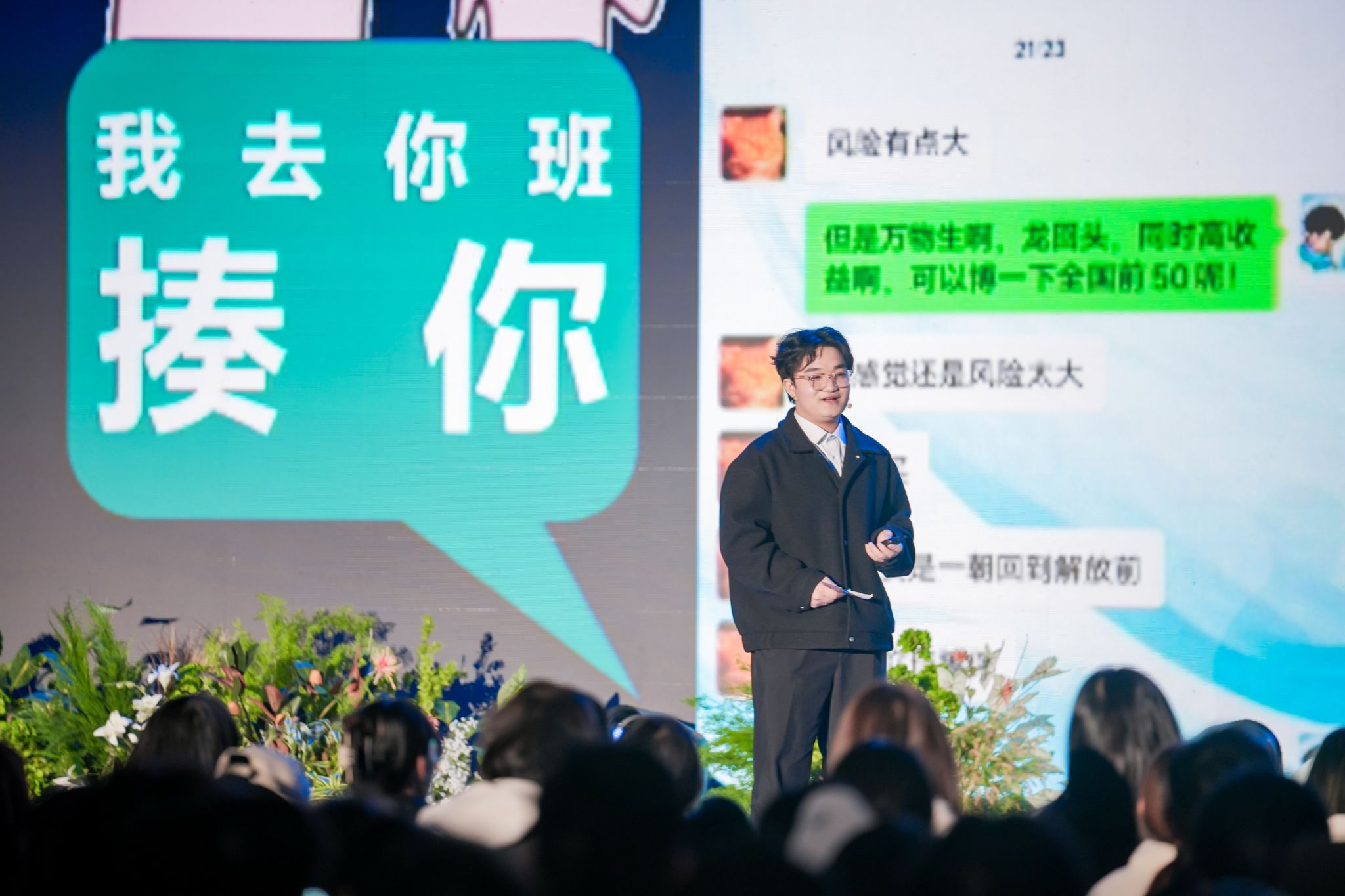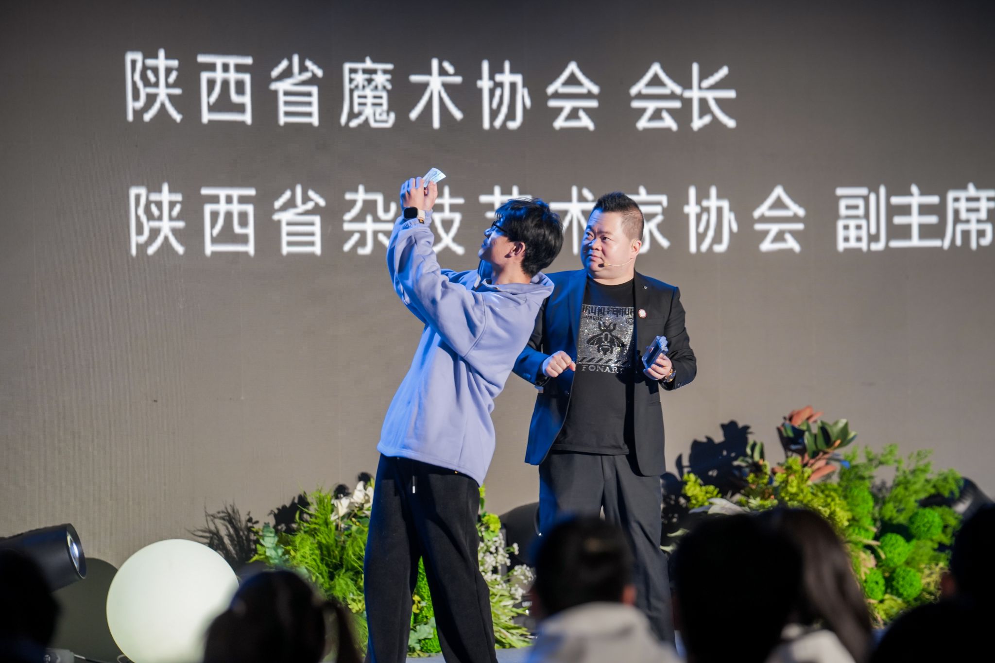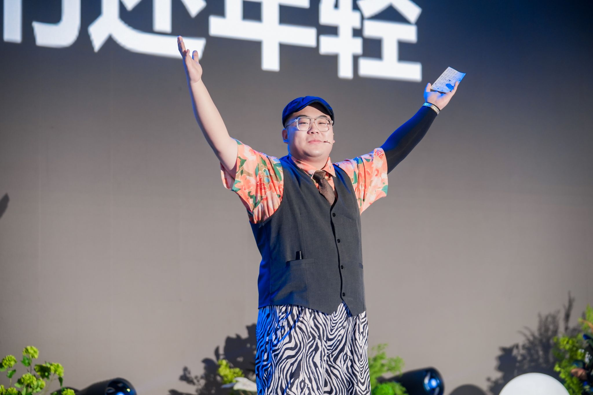 在学生年度盛典的中场环节,他的魔术脱口秀表演引得现场师生嗨笑不停,幽默和惊喜一环套一环,吊足了观众们的胃口。