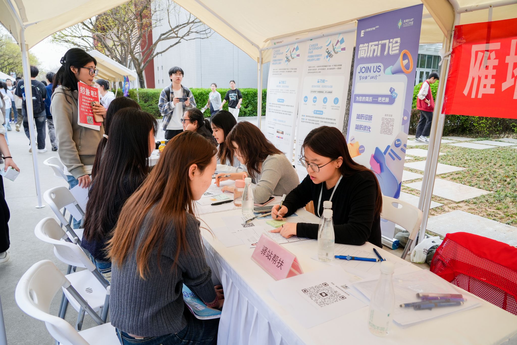 “简历门诊”展位前,生涯辅导老师为毕业生们提供“一对一”简历修改、面试辅导、心理调适、职业规划等全方位就业服务,帮助学生答疑解惑,满足学生多样化的就业及职业发展需求。