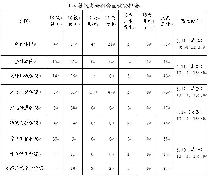 根据各分院提供的2016、2017级考研意向学生名单,面试时间如下表所示: