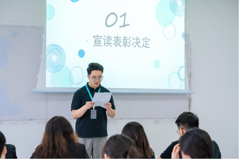继而进入文明宿舍授牌环节。受表彰的宿舍代表依次上台,从辅导员老师手中接过“文明宿舍”牌,这不仅是荣誉的象征,更是对宿舍成员长期以来共同努力、追求卓越的认可。他们在每个普通的日子里,高度自律,互帮互助,共同编织着关于友情、成长与梦想的故事。