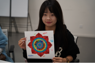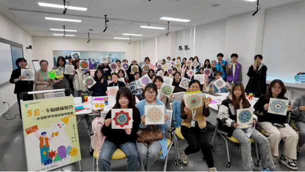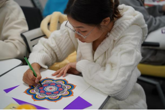 曼陀罗,是一个源自东方的神秘符号,以其独特的对称性和几何图案,成为我们表达和整合内心世界的桥梁。它帮助我们把无形的情绪转化为可见的图像,从而更好地理解和管理它们。老师和同学们挑选了自己喜欢的几何图形卡,在培训师讲解完之后,大家都沉浸在自己的世界中,享受曼陀罗带来的沉静,通过艺术表达释放积压的情绪,找到与情绪的和解的方法。