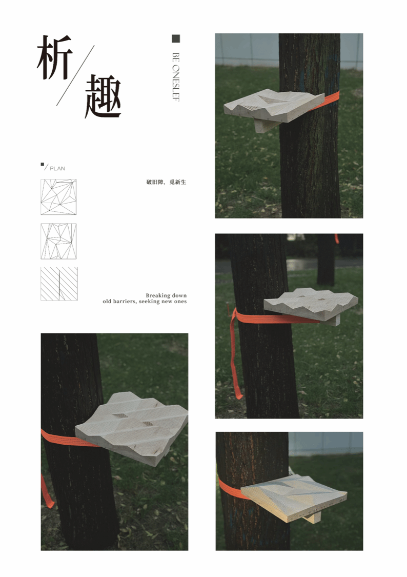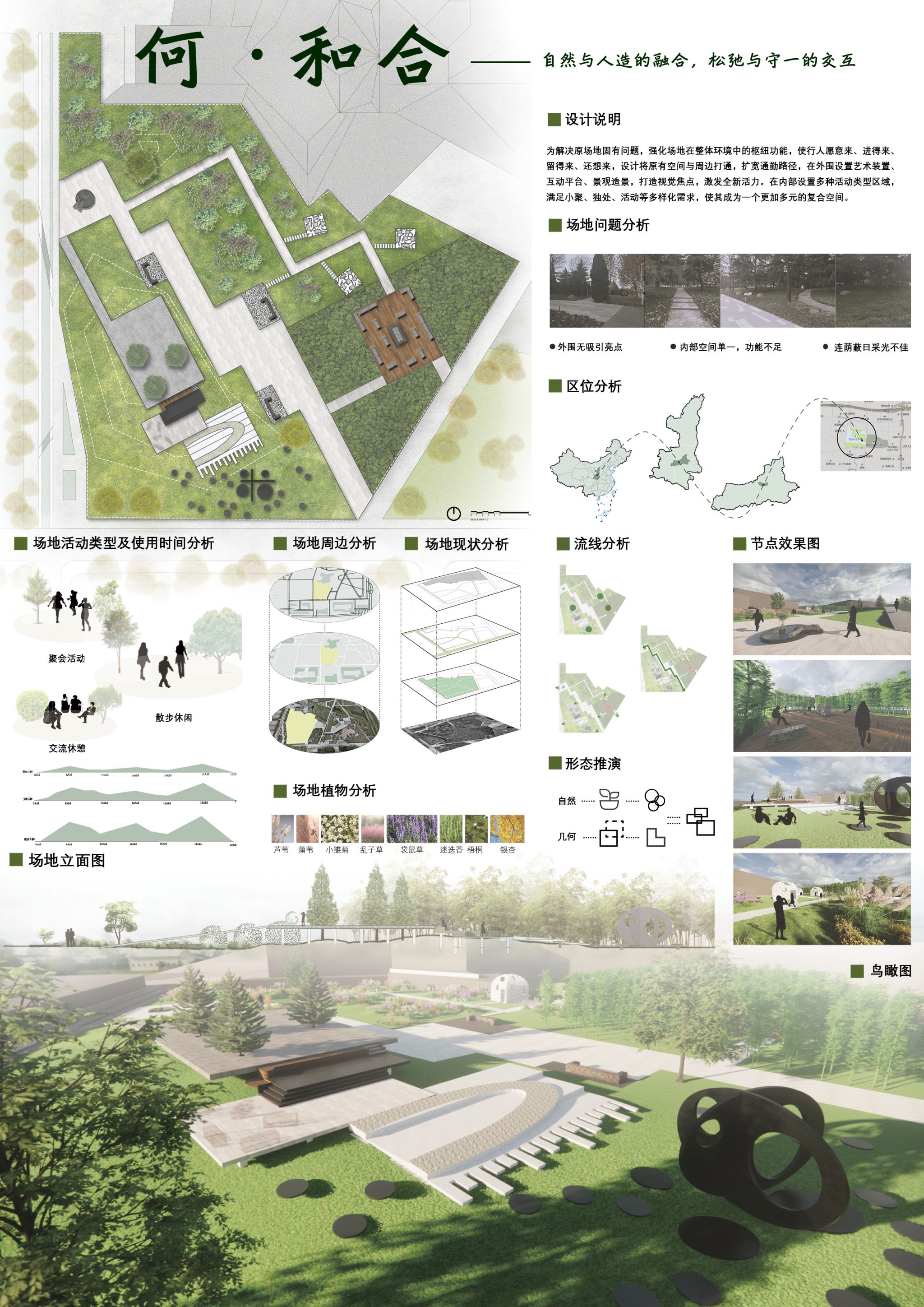 评语:作品聚焦校园空间重塑,将原草坪区域改造为功能多元的枢纽空间,不仅优化了通勤体验,还为校园生活注入全新活力。